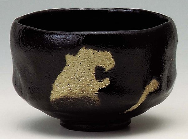 | ■茶道具 抹茶茶碗、 黒楽茶碗 虎、 干支 「寅」、 京都 佐々木松楽作 | |
