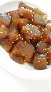 中に味がしみ込むよう「隠し包丁」を入れ、唐辛子・かつおだしで甘辛な味付にしました。お弁当の付け合わせ、ビールのおつまみ等、幅広くご使用いただけます