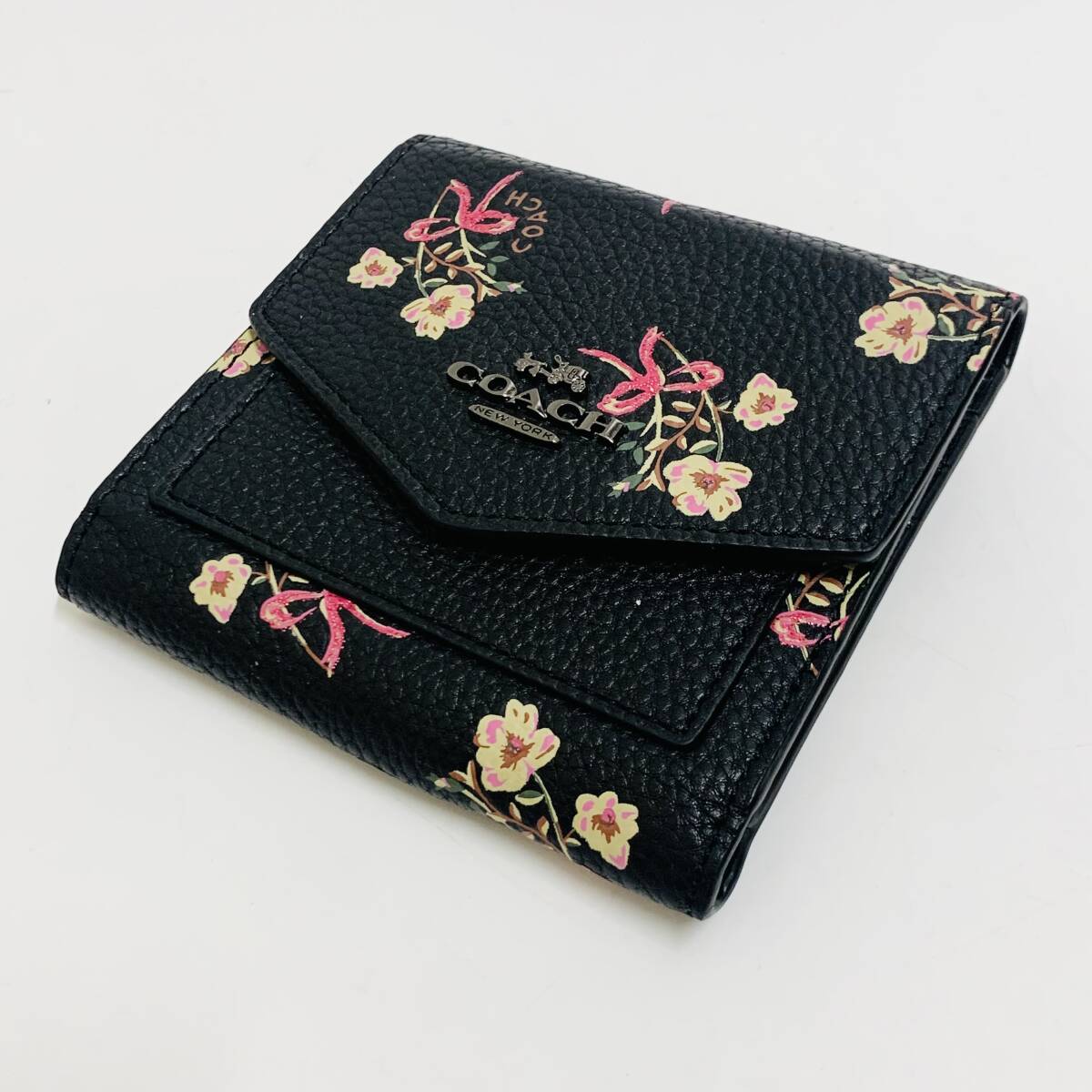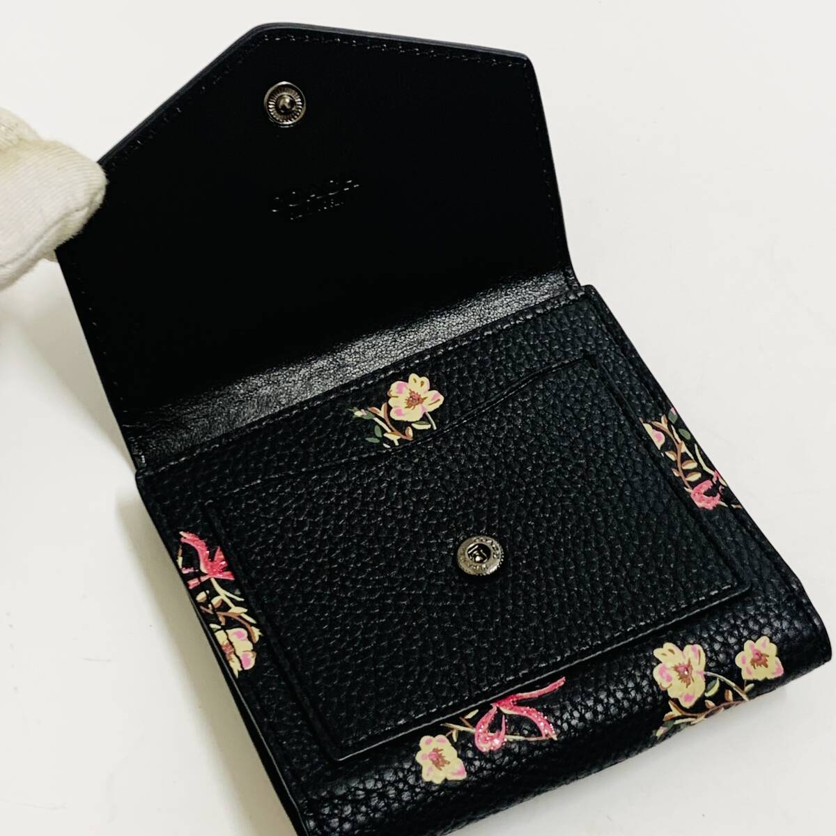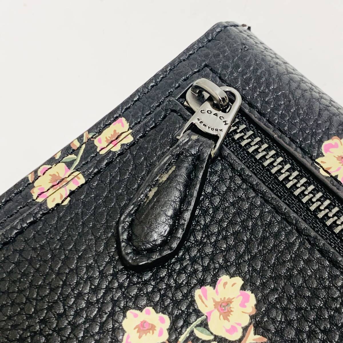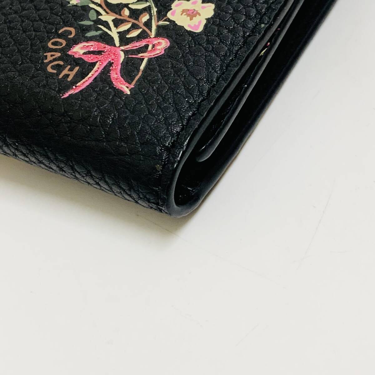 | COACH コーチ レザー 3つ折り財布 花 フラワー ブラック | ||