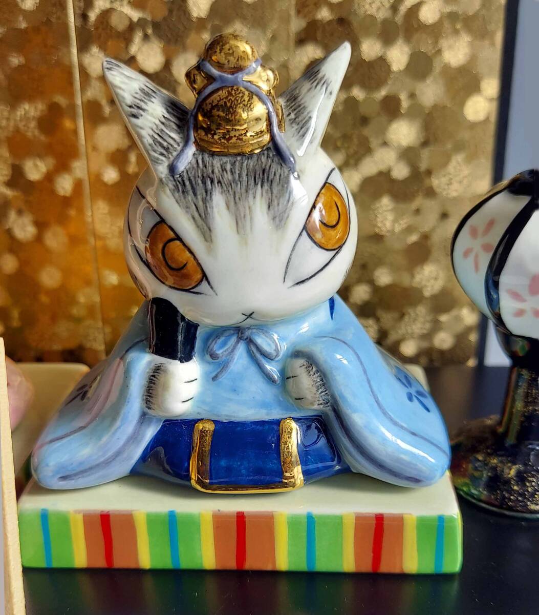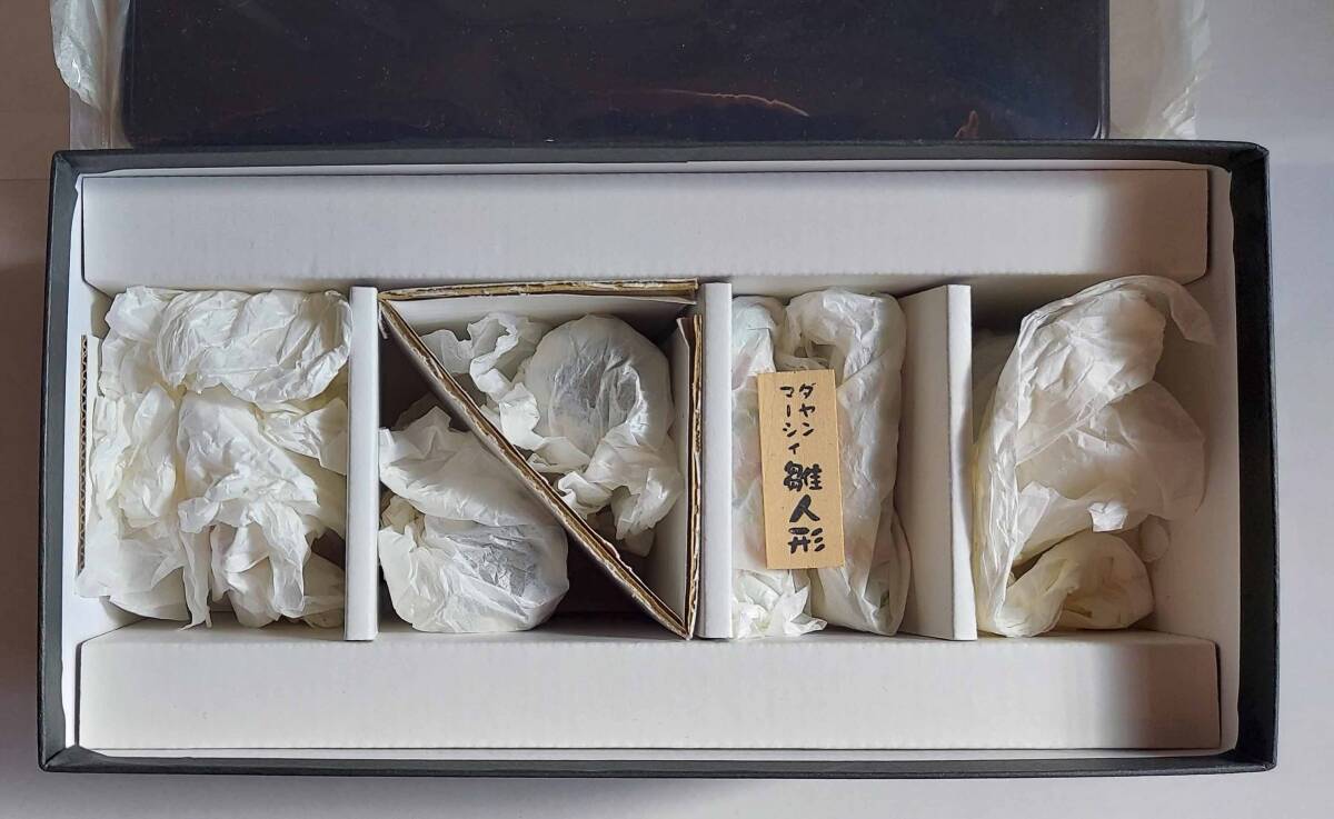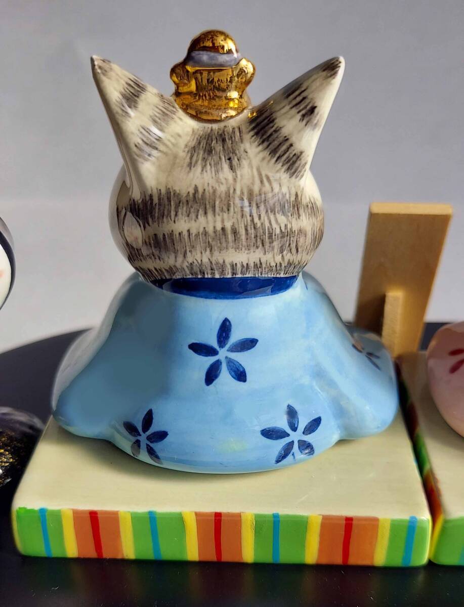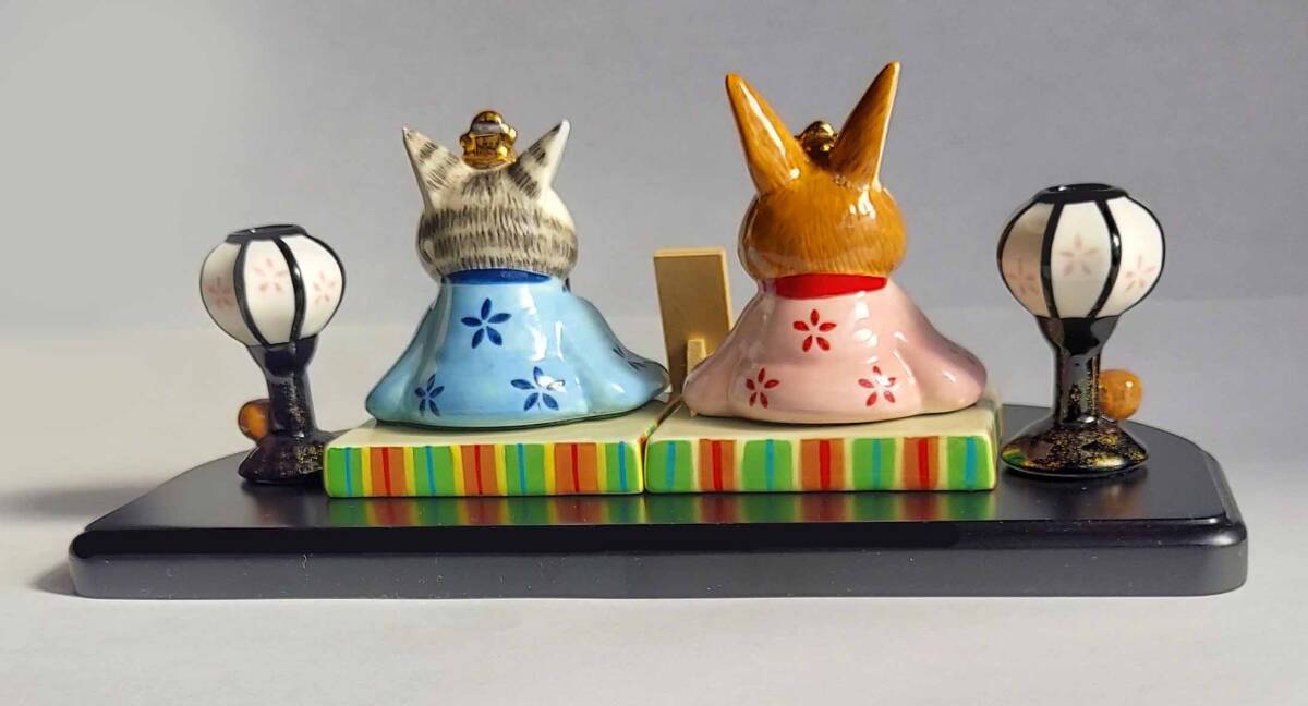 陶器製のダヤンとマーシィ雛人形です。 未使用ですが、マーシィの右の耳の付け根に 傷があるのが分かり、大幅に値下げしました。 ダ ヤ ン :幅約6.5㎝×奥行約4.5㎝×高さ約6㎝ マーシィ:幅約6㎝×奥行約4.5㎝×高さ約5.5㎝ 箱サイズ:幅約23㎝×奥行約12㎝×高さ約9㎝