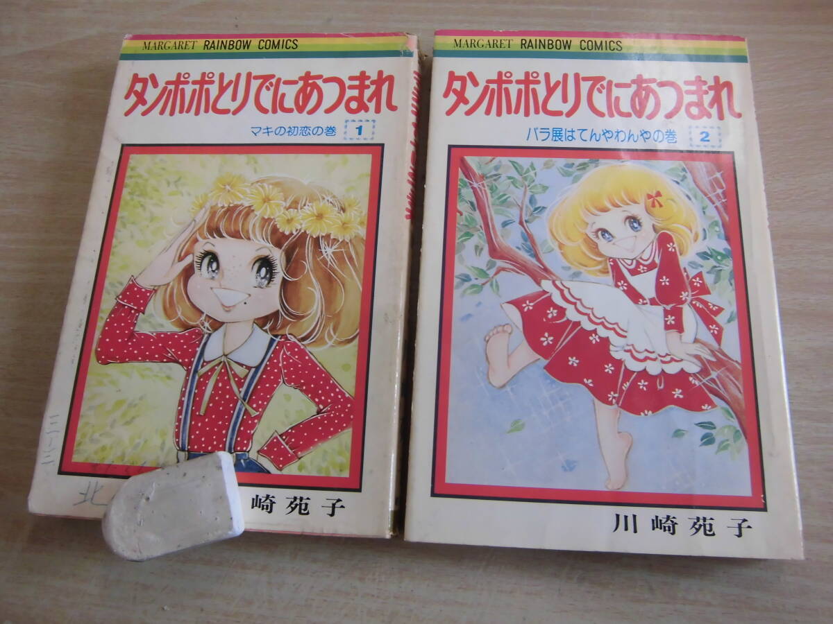 集英社マーガレットレインボーコミックス 川崎苑子 「タンポポとりでにあつまれ 全2巻」 1976,1977年発行 初版 状態は経年のイタミ、ヒヤケ、カバーヨゴレ、1巻カバー表紙下部と最終ページに名前記入と背表紙上部劣化、2巻カバー折り返し貼付けアリ 発送方法は郵便局のみ対応です。 仕事の勤務時間が不定期の為土日祝日や勤務中の決済をいただいた際に当日の対応が出来ない場合があります。