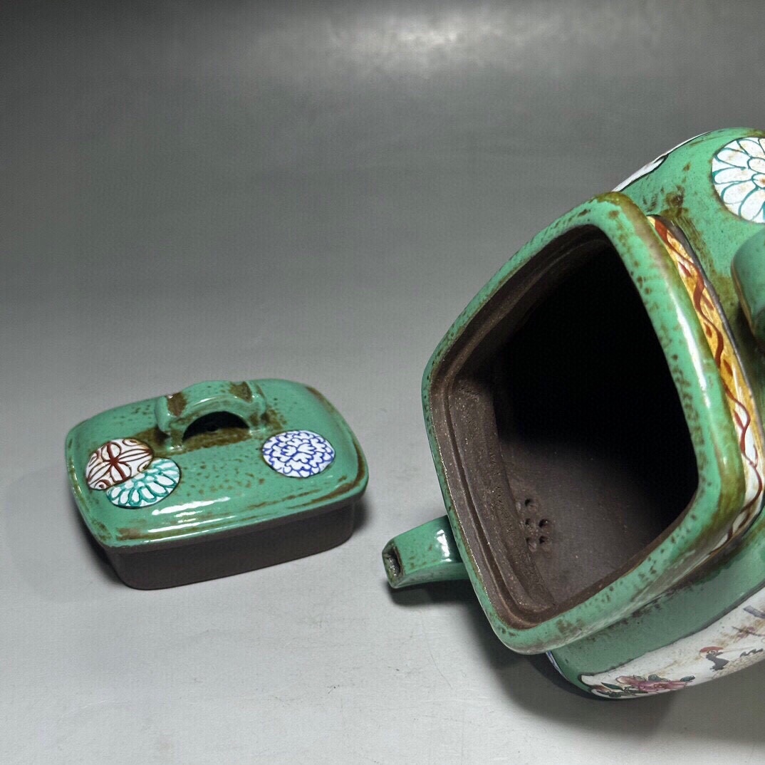説明 | 造形が美しく、精巧で、砂質が細かく、色が純朴で、品質が完全である 品茗:松延年 底款:金鼎商 材:紫砂 容量:300cc 出水孔:网孔 尺寸: 14.5/9cm 金鼎商:即民国期德盛紫砂陶器行(亦称公司或店),文于民国五年( 1916 年)所。店址在宜城蛟。早期用印“德盛”文小方章,底盖并用。稍后用印文大方章“德盛制”。中期用印大章文“德盛制”、“宜德盛制”。至二十年代后期,店主文立“德盛”店号著名商“金鼎商”。“金鼎商”印款中央以鼎案,四角文楷“金鼎商”,“德盛”店号用印款。。 |