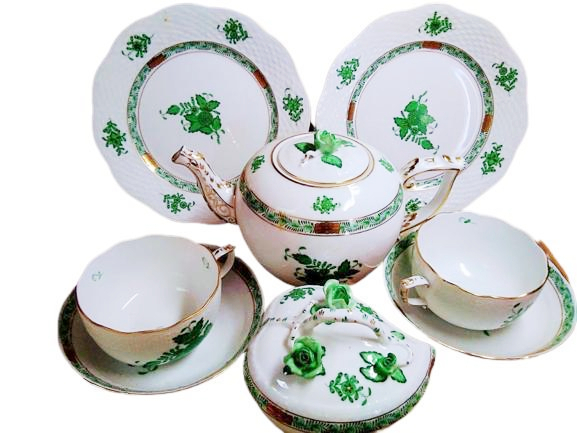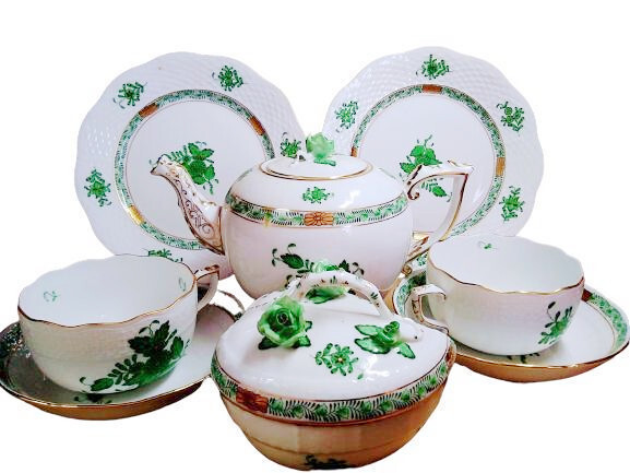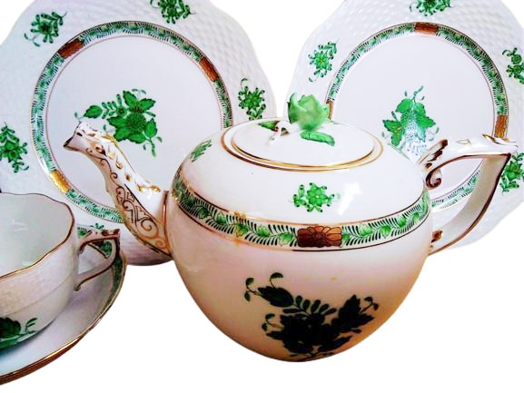 世界的に高い人気を誇るハンガリーの名窯・HEREND(ヘレンド)より、希少なアポニーグリーンシリーズのティーセットを出品いたします。