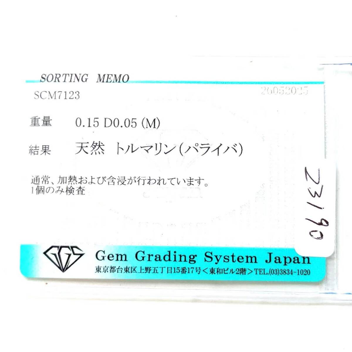 | 素材 | ■K18WG ■宝石:パライバ0.15・ダイヤモンド0.05 |