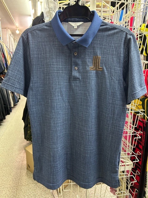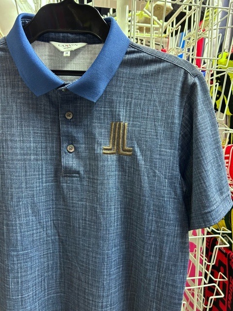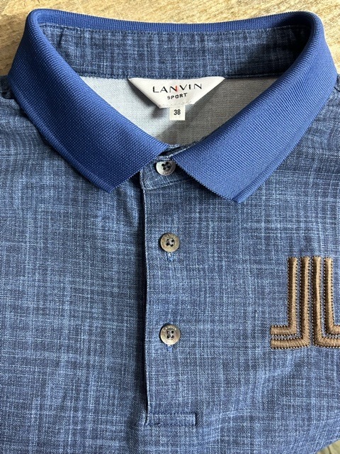 | LANVIN SPORT デサント インディゴ風 ドライ ポロシャツ ロゴ刺繍 半袖 青 38M | |||||||||||
