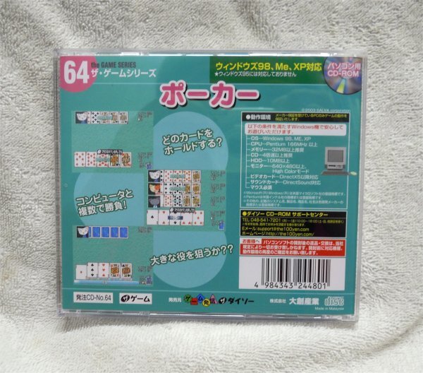 | ダイソー ザ・ゲームシリーズ ポーカー CD-No.64 Windows用CD-ROM 中古 |
