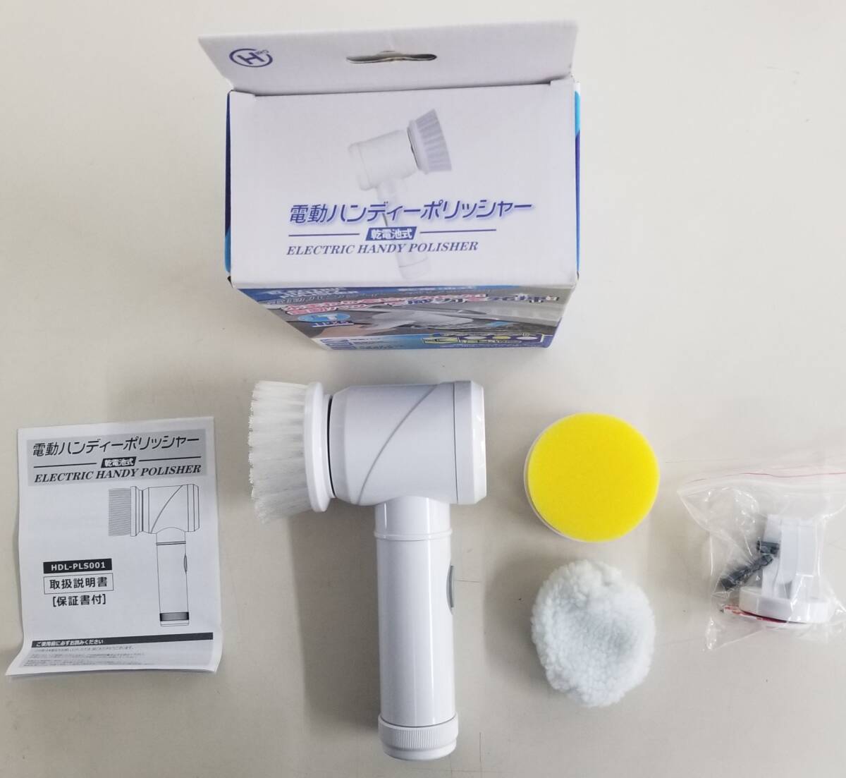 | 電動ブラシ 台所清掃 トイレ清掃 IPX5 生活防水 電動ハンディーポリッシャー アタッチメント3種類付 乾電池式 HDL-PLS001 未使用品 | ||||||||