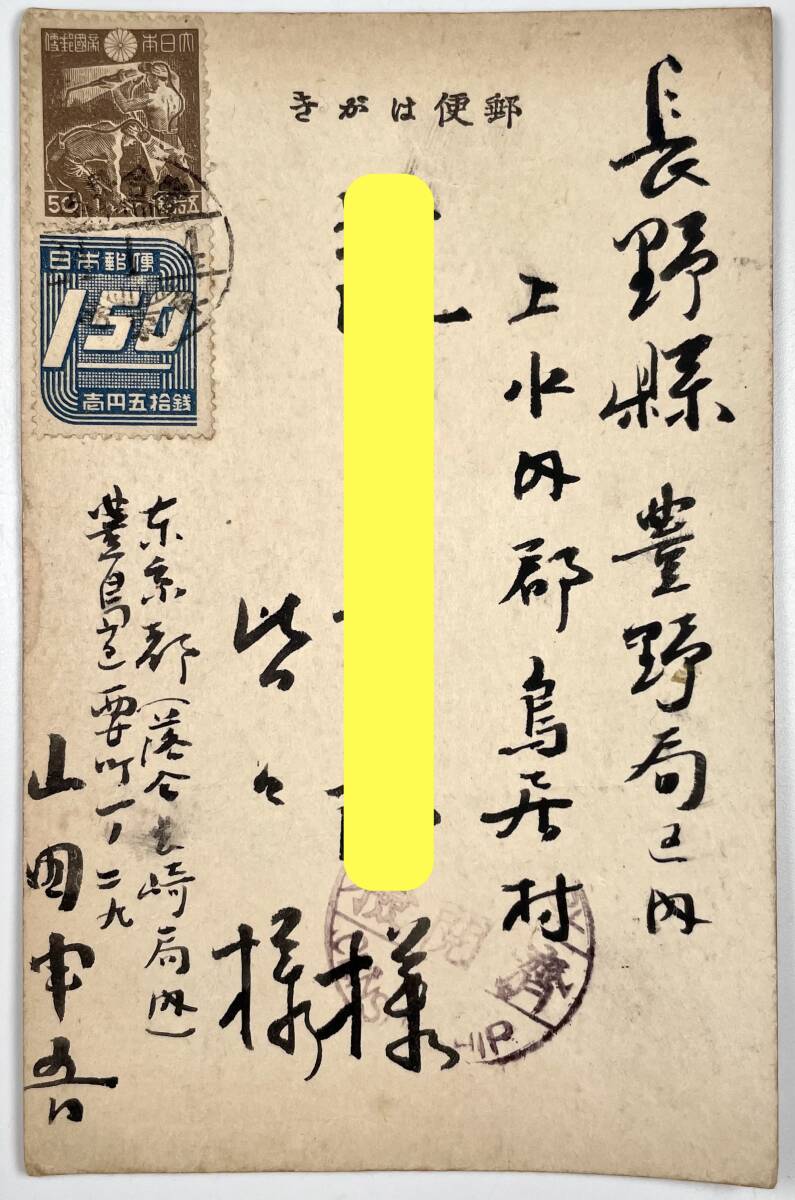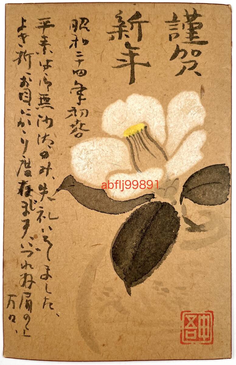 絵葉書 山田申吾の年賀状(絵ハガキ/日本画家/昭和24年/1949年/レトロ/JUNK)
