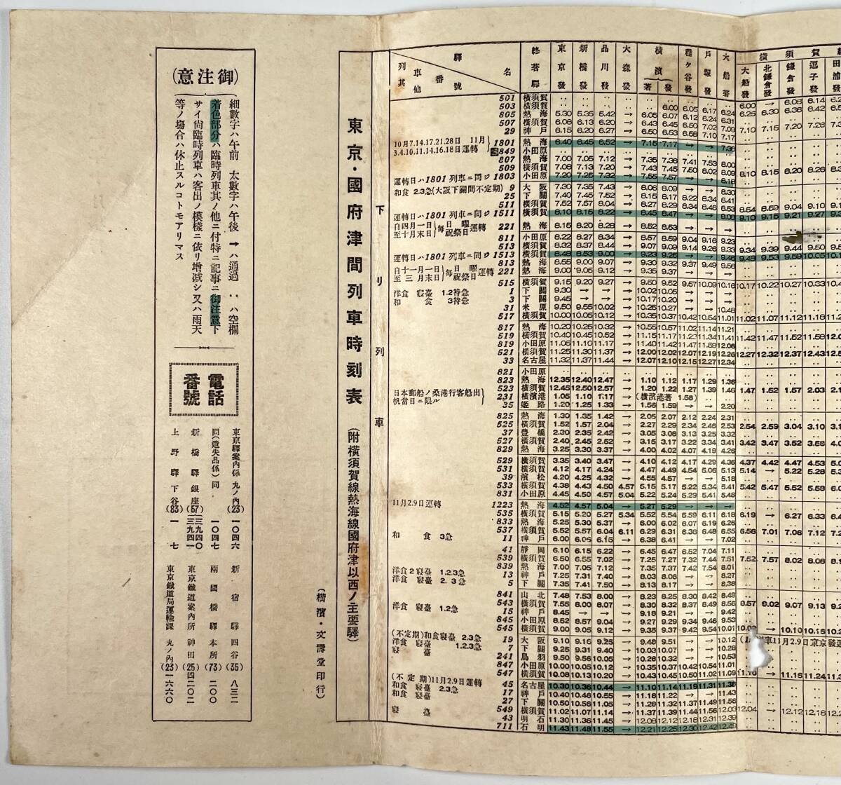 資料 東京鐵道局 列車時刻表(鐵道省/昭和3年10月/1928年/レトロ/JUNK)