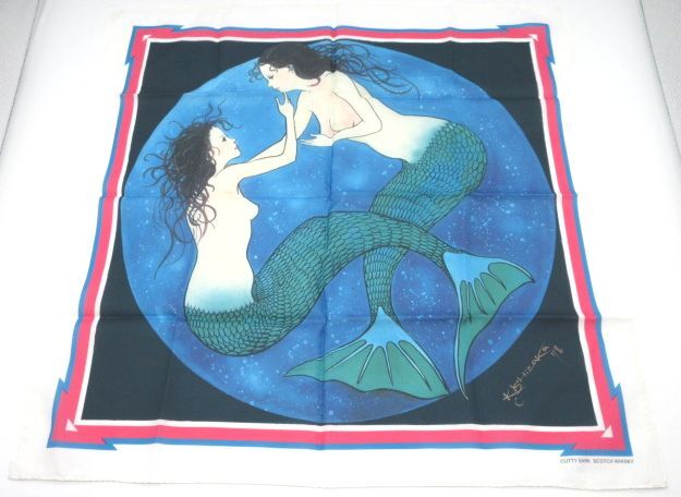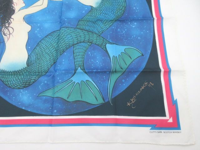 ●CUTTY SARK カティサーク スカーフ ハンカチ 人魚 マーメイド ブルー系 石坂浩二 1978年代 ノベルティ● | |||