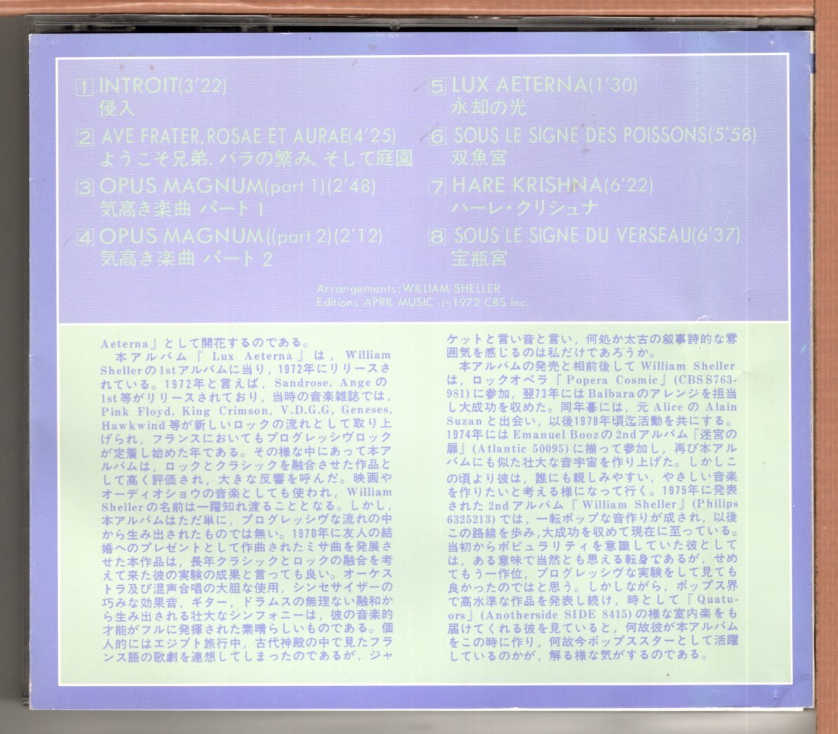 【中古CD】ウィリアム・シェラー / 永劫の光 WILLIAM SHELLER / LUX AETERNA| 出价者 | 信用 | 价格 | 时间 |