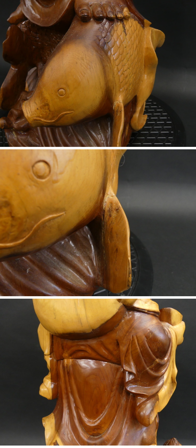 ◇商品情報◇ | 当店の商品をご覧いただきありがとうございます!! 美術工芸 木彫 七福神 布袋様 大型 立像 飾り 置物 高さ約75cm 経年相応のスレ、小キズ傷、小さな欠け、多少の汚れなどはございます。 大きな欠損などはなく十分に鑑賞いただけるかと思います 部分的な補色/補修跡のような箇所がございます(画像参照) サイズ(約) :高さ 75cm :奥行 31cm :幅 40cm 作風、状態などは画像よりご判断くださいませ。 ※目視チェックをしていますが、表記漏れや見落としや細かな擦れ・薄汚れなどがある場合もございますので予め画像をご確認の上でご入札をお願いいたします。 商品のトップ画像端に写っている茶筅はサイズ比較用の備品ですので付属はしません | ||||||||||||||||||||||||||||||