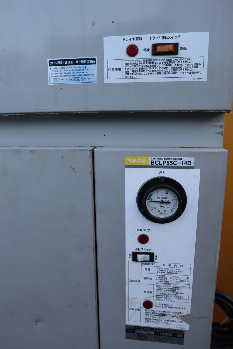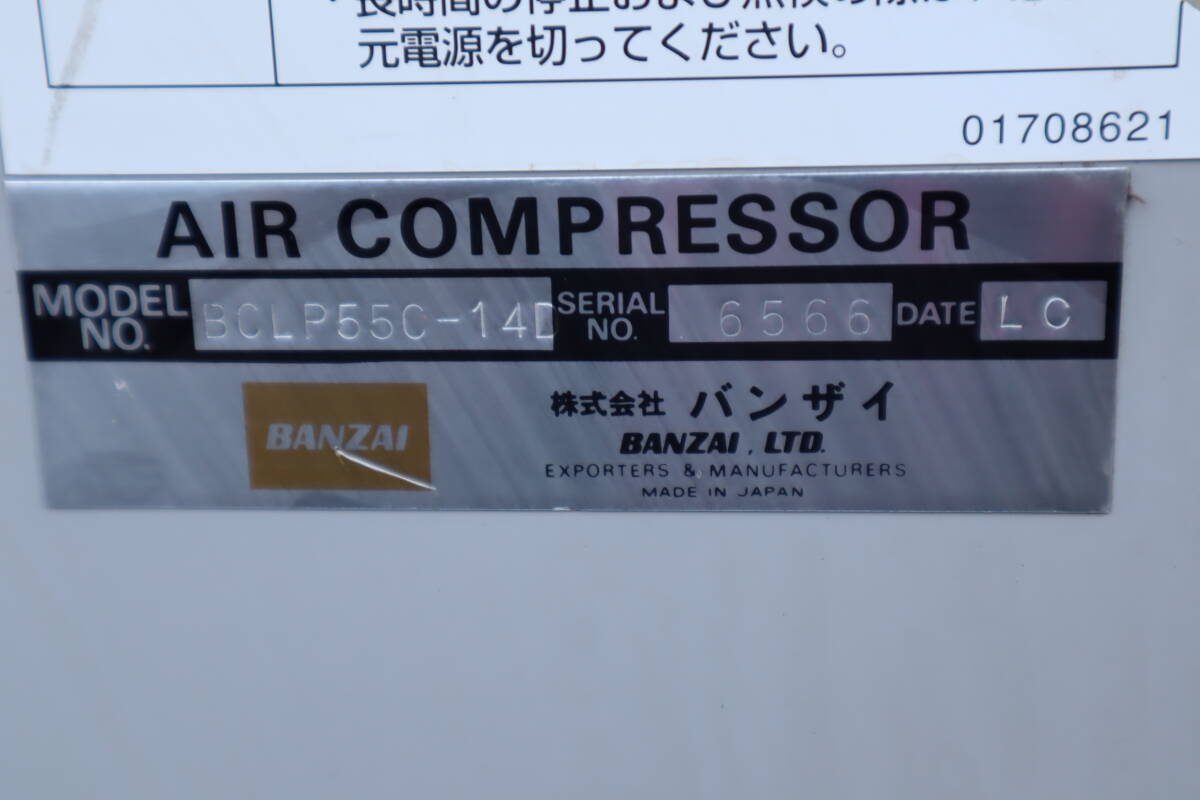 | BANZAI エアーコンプレッサー BCLP55C-14D 5.5kW(7.5馬力) 200V 三相エアードライヤー付き タンク70L 動作確認済 即決価格 | ||
