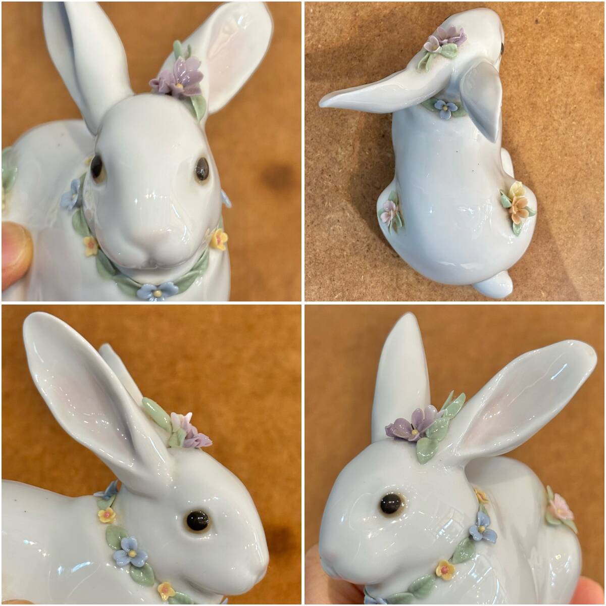☆LLADRO リヤドロ フィギュリン 花飾りの白ウサギ 箱無し 現状品 発送サイズ60☆|