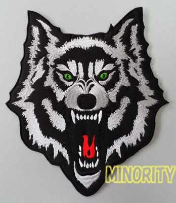 ☆ 大判の迫力あるWolfバイカーズ刺繍ワッペン(バイカーズパッチ)です。