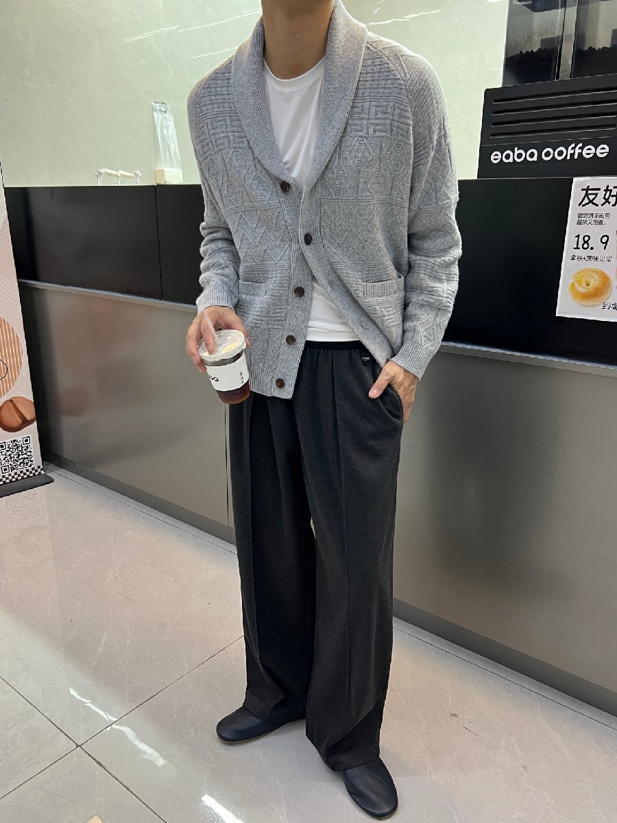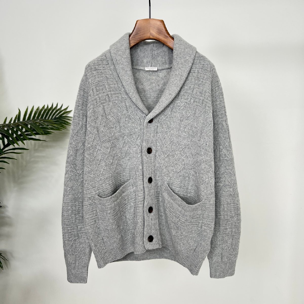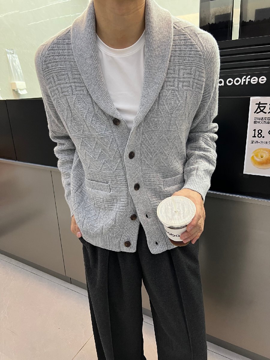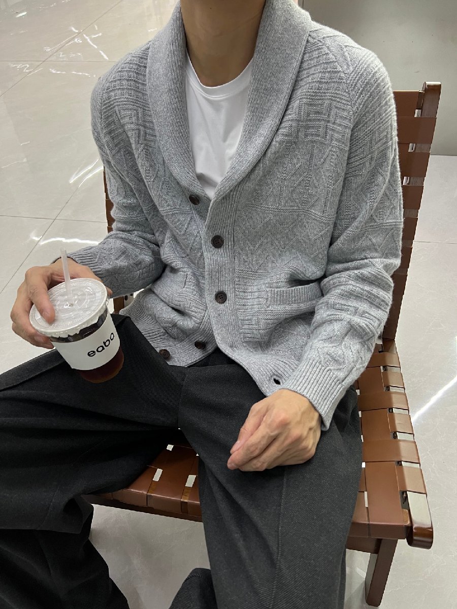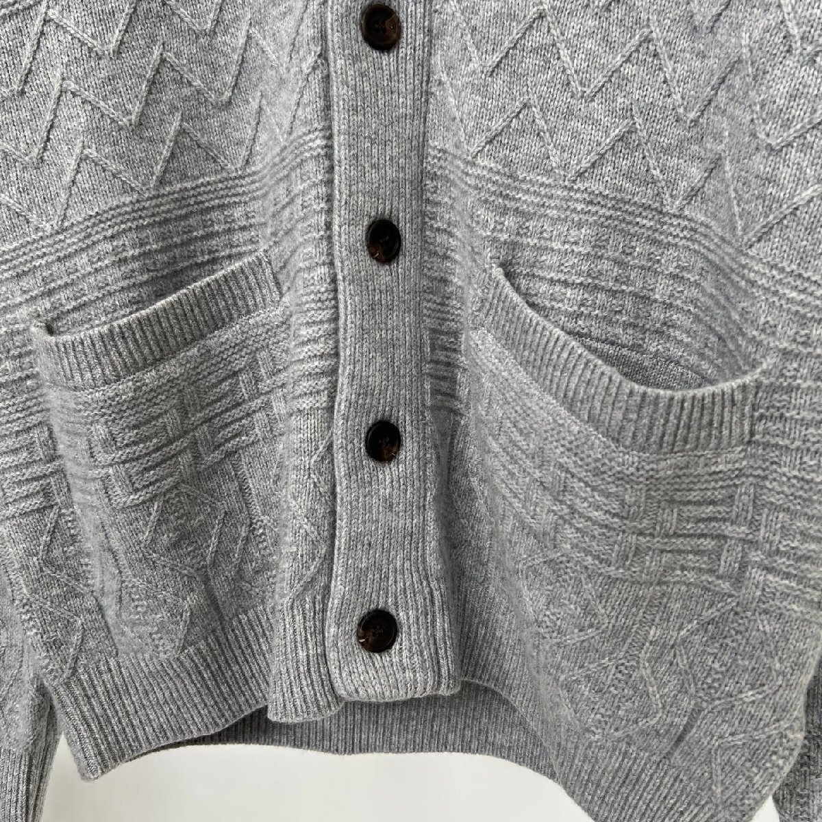 上質な羊毛を使用した、洗練された幾何学模様が特徴的なカーディガンです。シンプルでありながら、細部まで丁寧に編み込まれた模様が高級感を演出します。グレーのカラーリングは、様々なコーディネートに合わせやすく、オールマイティーに活躍します。 Mサイズ: バスト 104cm / 袖丈 73cm / 着丈 66cm Lサイズ: バスト 108cm / 袖丈 75cm / 着丈 68cm XLサイズ: バスト 112cm / 袖丈 77cm / 着丈 70cm 2XLサイズ: バスト 116cm / 袖丈 77cm / 着丈 72cm 3XLサイズ: バスト 120cm / 袖丈 79cm / 着丈 73cm