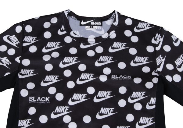| ブラックコムデギャルソン×ナイキBLACK COMME des GARCONS×NIKE ロゴプリントリブ地切替カットソー 黒白S |