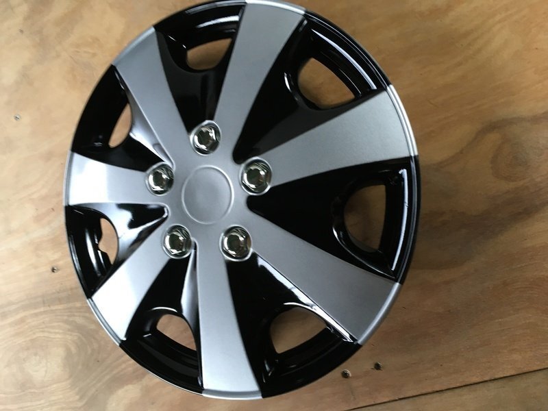 シルバーとブラックの塗り分けされたポップなデザインのホイールカバーであなたの愛車を劇的にドレスアップします。