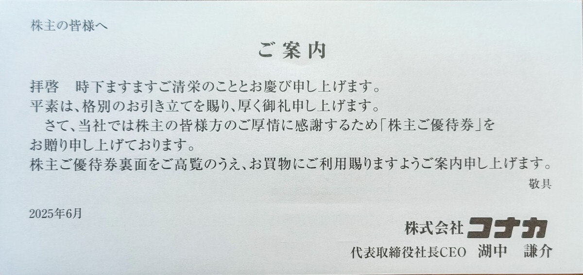 株式会社コナカ 株主優待券| 出价者 | 信用 | 价格 | 时间 |