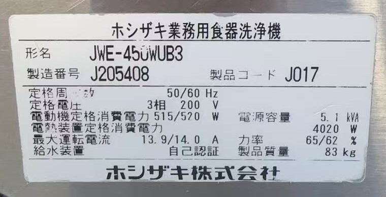 | 【中古】食器洗浄機 ホシザキ JWE-450WUB3 2019年 | |