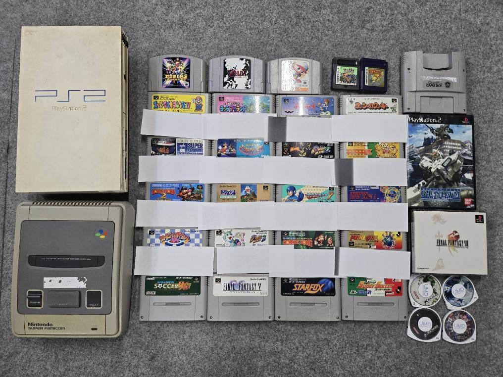 | 679 PS2本体 スーパーファミコン本体 ゲームソフトおまとめ 約30本 (スーパーファミコン、PS2、PSP、ゲームボーイ、) 動作未確認 現状品 | ||