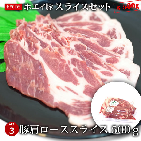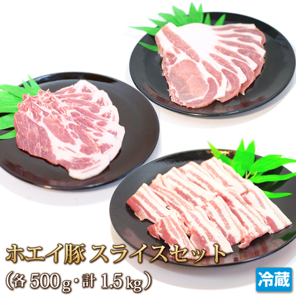 セット内容は以下の通りとなります。 ・豚バラ スライス 500g ・豚ロース スライス 500g ・豚肩ロース スライス 500g |