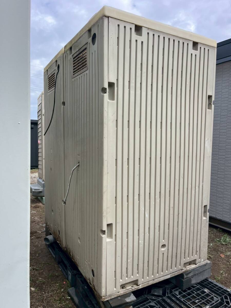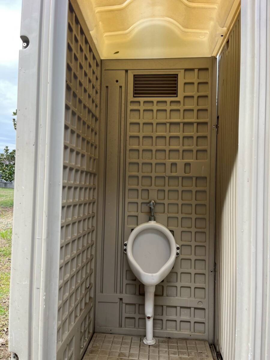 | 中古の水洗式の仮設トイレです。和式の個室に男性用のトイレ室を連結しています。男性用には扉がありません。和式の便器の手前下のパーツが欠品しています。設置には基礎の準備が必要です。現状渡しとなりますのでご了承ください。 | |||