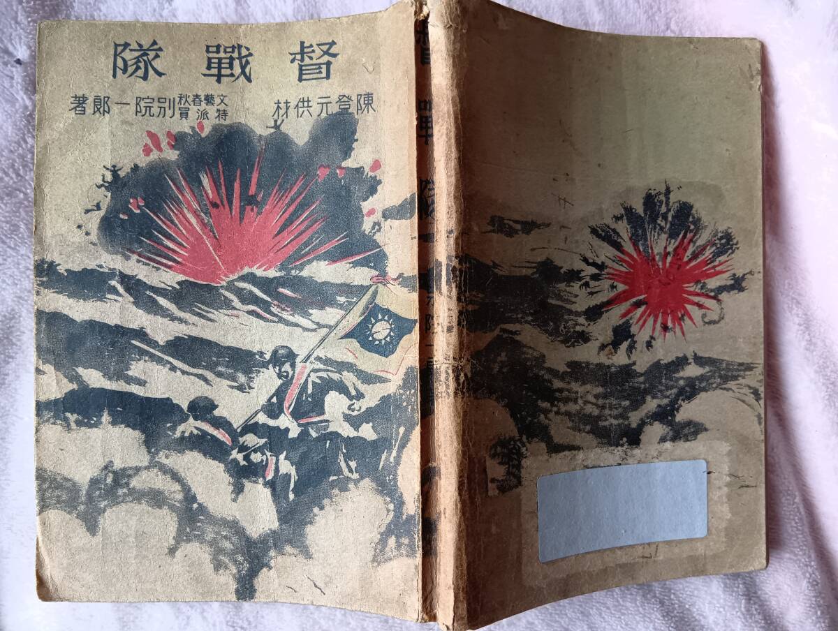 別院一郎『督戦隊』初版 全251頁 著者(=「文芸春秋特派員」)序文 「陳登元・供材」とある 日中戦争を中国側から描く 中扉切取 背に湾曲