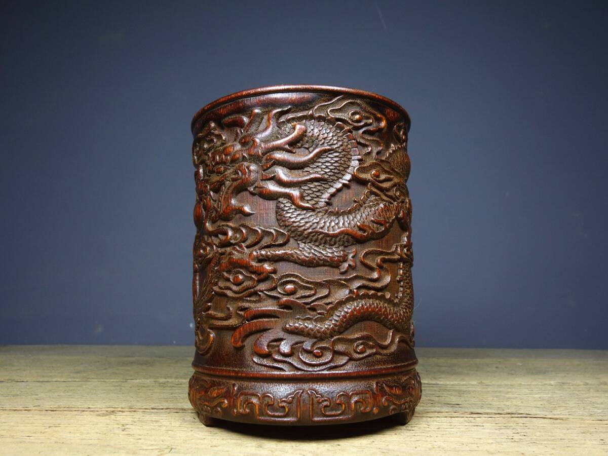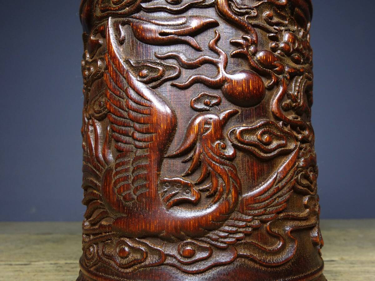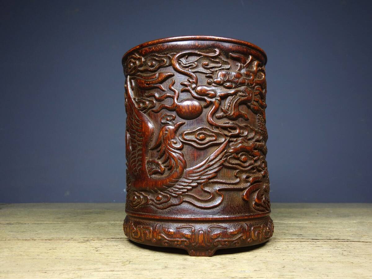 | 【古寶奇蔵】竹材・細密彫・龍鳳呈祥紋・筆筒・筆立・文房具・書道品・古董品・中国古玩・時代物・稀少珍品・中国時代美術111104 |