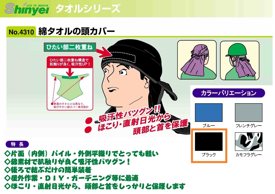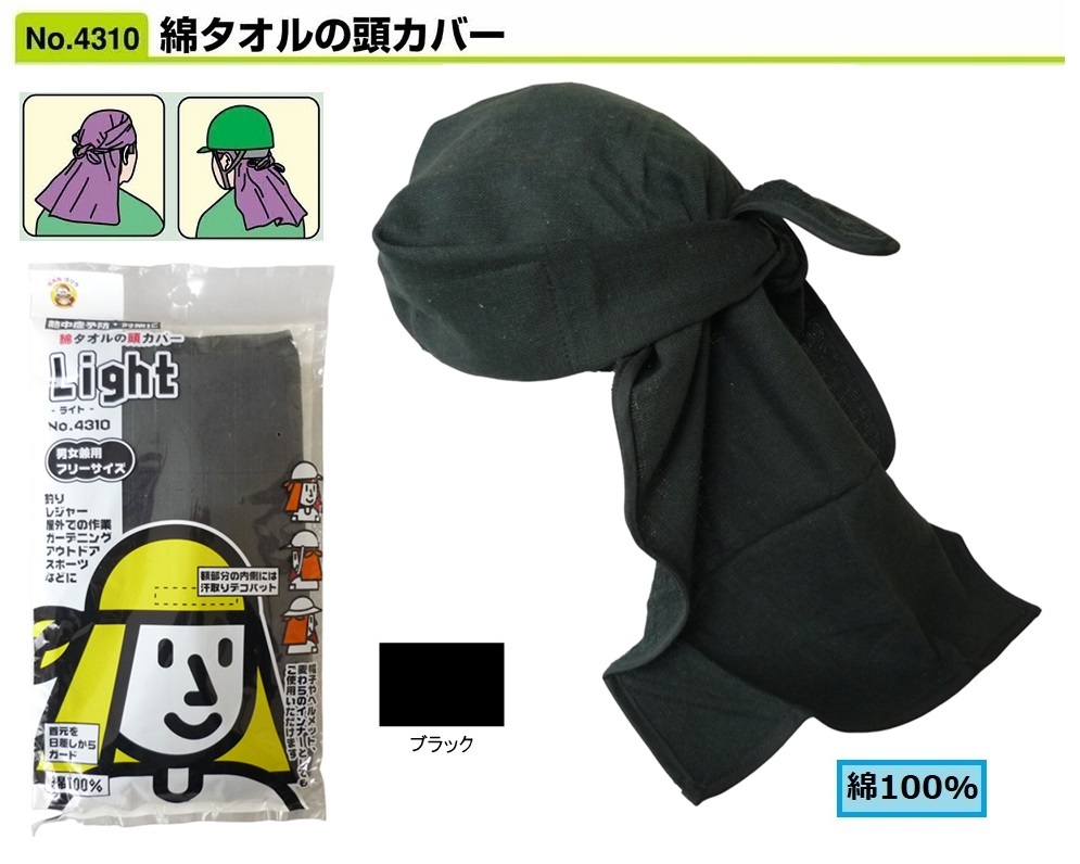 No.4310 綿タオルの頭カバー ブラック 2枚