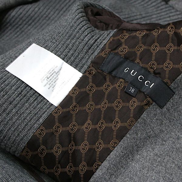 | 良品 ◆超レア◆ 国内正規品 GUCCI グッチ リブニット 切り替え ジャケット 38 グレー イタリア製 | ||||