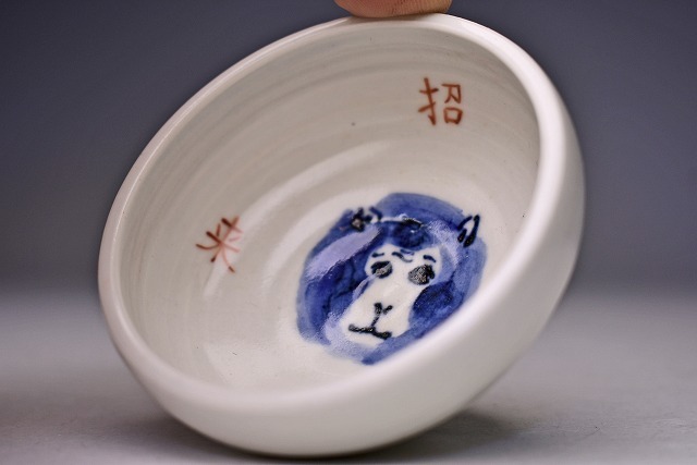 サイズは 74mmx高さ38mm です。 京焼の ベテラン 森岡嘉祥 氏の作品です。 染付と赤絵で デザインされた ぐい呑で、お猿さんがかわいらしいです。宅配便60サイズにて発送します。 他にも多数出品してます。同梱対応いたします。
