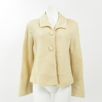 | パステルイエローが上品なジャケットが入荷しました☆ ツイード調の凹凸のある素材でディテイールに上質感があります。 ボタンも同素材で優しい印象♪ 定番のデザインですのでスーツやワンピースなどに合わせてお使い頂けます。 右前身頃の下から26cmのところに引っ掻きがあり、所どころ毛玉が見られます。 着丈約57cm裄丈約81cmバスト約98cm 【サイズ】:(2) 【素 材】:(毛95%ナイロン5% 裏キュプラ100%) 【 色 】:(薄イエロー) 【程 度】:(B) 8219-20111014-015 217 003 | ||||
