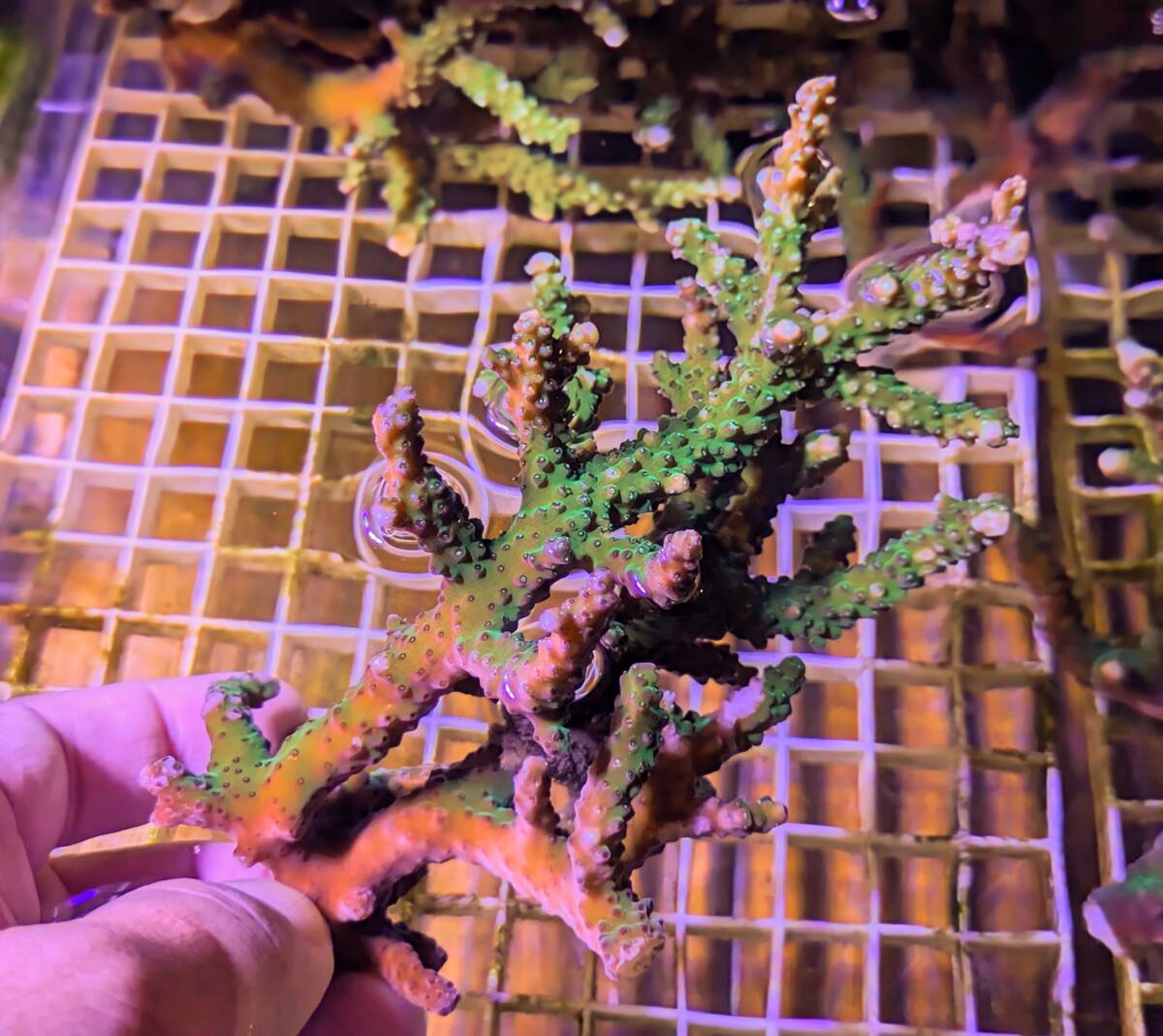 こちらのオークションで購入して当方の水槽内で増殖したサンゴです。購入時の名称は忘れてしまいましたがインドネシア産で手の平サイズをパディングした個体です。画像撮影時に12cm前後になります。(目測の為、若干の+-はご容赦下さい。LED照明下で青,白,赤系の切替をした上で撮影してあります。)画像の個体をお送り致します。2日以上かかる地域の方はリスクはご承知おき下さい。(沖縄、九州、北海道及び離島)到着御希望日(仕事の都合上、発送が出来ない日にちもございますのでご了承の上2〜3日の予備日にちをお知らせ頂けましたら幸いです。お時間、センター止もございましたら併せましてお知らせ下さい。)運賃は本州2000円,その他地域は2500円のご負担をお願い致します。(複数落札を頂いた場合は330円の差額が発生致しますのでご了承下さい。)原則、死着保障はありません。生体ですのでご理解、ご了承の上ご入札をお願い致します。写真での判断となるため、ノークレーム・ノーリターンでお願い致します。ネットでの取引になりますので上記の内容に関しまして御理解ください。飼育環境や照明機器,個体によっては、色味、柄など生体の体調や環境の変化、成長に伴う変化などがある場合もある事をご承知ください。神経質な方,細部に渡りこだわりの有る方の入札はご遠慮頂きます様お願い致します。ご不明な点や詳細に関しましては必ずご質問からお問い合わせをお願い致します。梱包中のスレや傷、輸送中の事故などの責任は負いかねますので、ご了承の上、入札お願い致します。落札後、ナビにて24時間以内の御連絡,3日以内のご入金,1週間以内の発送及び到着日当日中のお受け取り連絡をお願い致します。商品の発送は、入金確認後3日以内に行いますが生体の体調により、出品キャンセル、発送の遅れや、最悪お届けできない場合があります。生体の状態によっては、オークション中に出品をキャンセルする場合があります。悪い評価が多い方の入札はお断り致します。落札後や入札中に取り消します。以上の条件をご理解頂けます方のご入札をお願い致します。