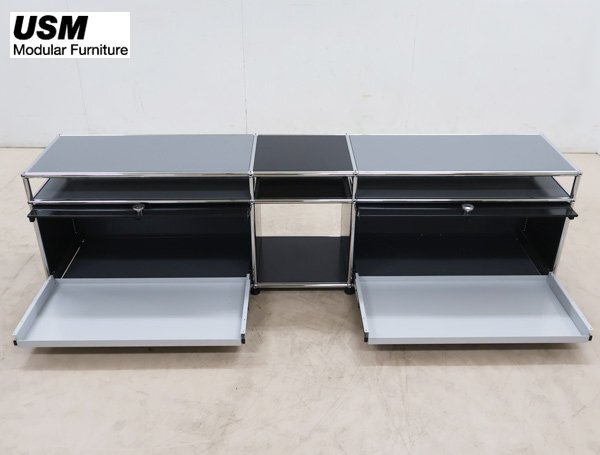 スイスUSM社の名作システムファニチャー、モジュラー収納システムのテレビボード/キャビネットです。
