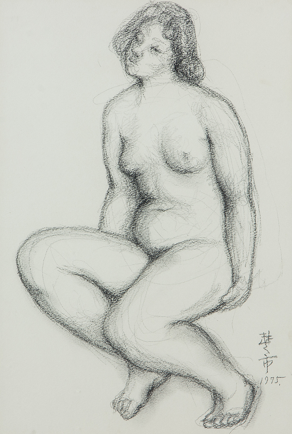 品名 真作 山本豊市 作 裸婦 デッサン 素描 ドローイング 1975年 YATAYA額