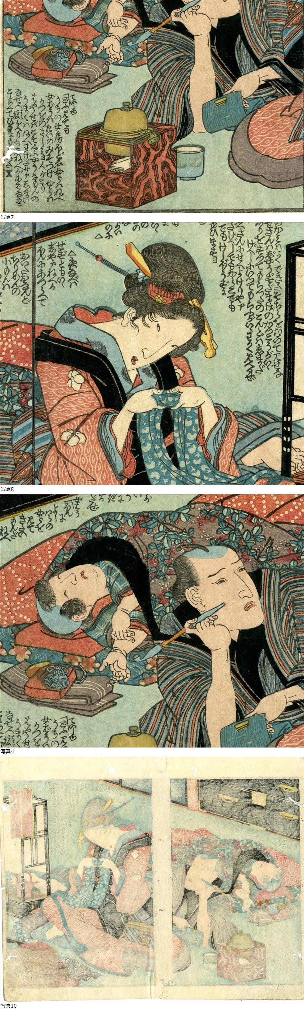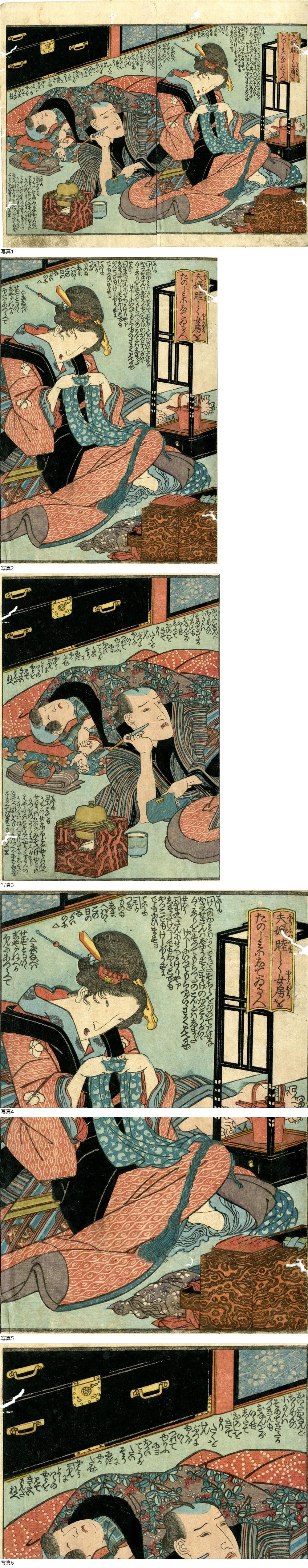 | 摺物一枚「夫婦睦しく女房をたのしみにしている人」 真作 彩色木版画 双紙本 浮世絵 江戸 |