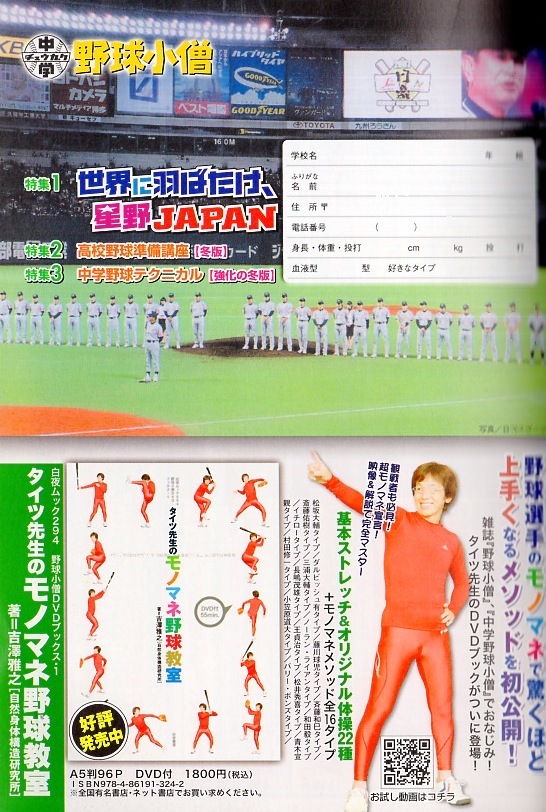 | 特集1 世界に羽ばたけ・星野JAPAN-日本代表最終候補選手からの直筆メッセージ、闘将・星野仙一(日本代表監督)物語、世界野球地図&年表、「日本野球」はココがすごい!/特集2 高校野球準備講座【冬版】-ドラフト1巡目の先輩球児・佐藤由規(仙台育英高校)・高濱卓也(横浜高校)、高校野球で頂点をめざす心構え&トレーニング/特集3 中学野球テクニカル【強化の冬版】-春にグンと伸びるための強化練習メニュー 出版社: 白夜書房; 隔月刊版 (2007/12/10) ASIN: B000ZNPK5C 発売日: 2007/12/10 商品パッケージの寸法: 20.8 x 14.8 x 1.6 cm 商品状態 並程度(表紙に擦れ等あり) | |||