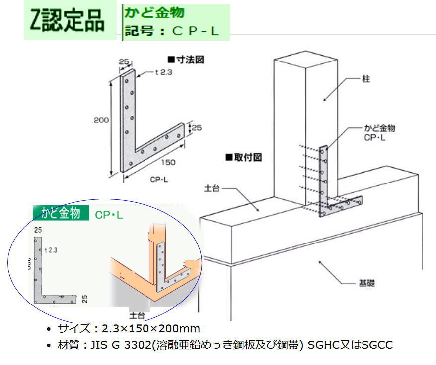 Zマーク認定金物 Zかど金物 CP-L ※強固接続金物5枚★送料無料 |