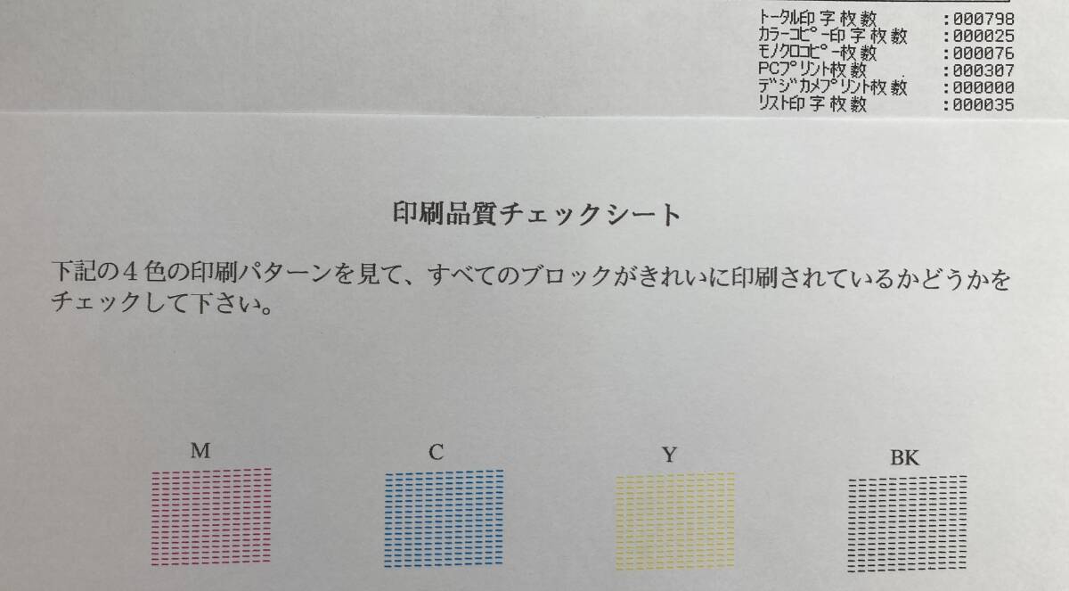 ノズルチェック、リスト印字、A4モノクロカラーコピーの確認を行っております。