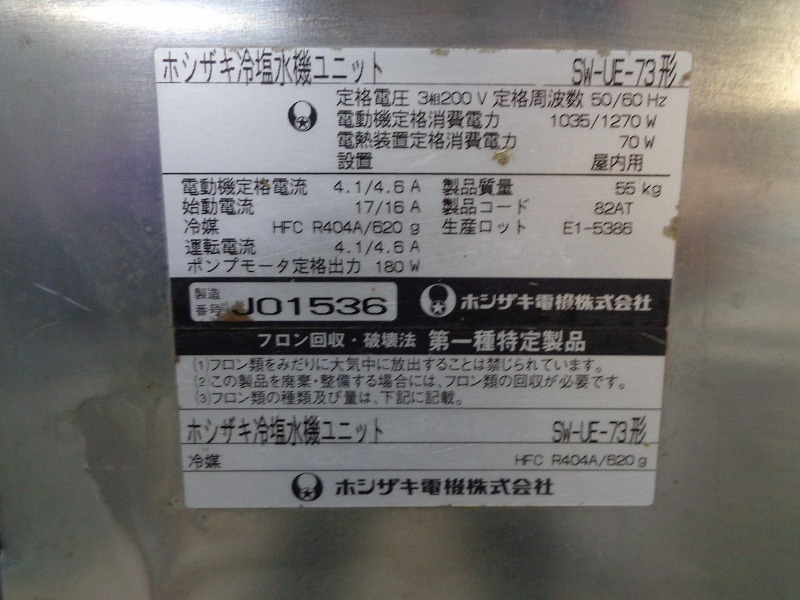 | 商品名 | 冷塩水機(水槽付き) |