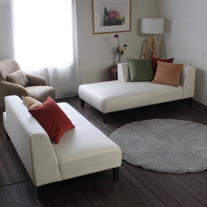 そのひと目で惹かれる色合いと、モダンで洗練されたフォルムが、 あわただしい日常に、ふっと「くつろぎの時間」を届けてくれる。 "広くて快適・美しくて実用的" をテーマに開発された、 家族にも、一人の時間にもぴったり寄り添うカウチソファです。 幅249cmのゆったりサイズながら、見た目の印象はすっきり。 ローバック設計なので、圧迫感がなく、リビングが広く見えるのも魅力です。 座面は、積層ウレタン構造でしっかりとした反発感があり、長時間でも疲れにくい快適な座り心地。 しっかり支えてくれる安心感と、リラックスできる柔らかさを、同時に叶えました。 “座る”が、“くつろぐ”に変わるソファ。 | サイズ・仕様 |