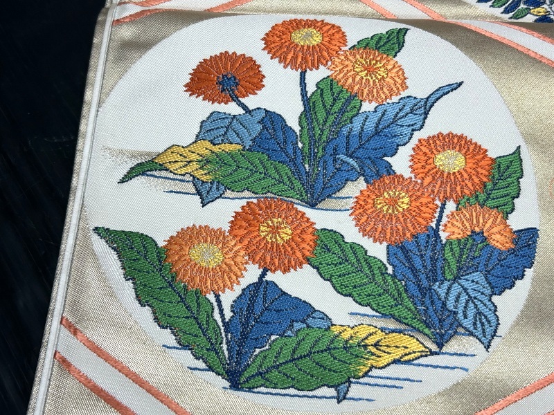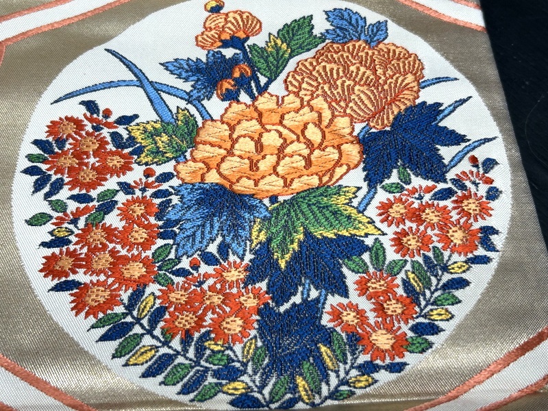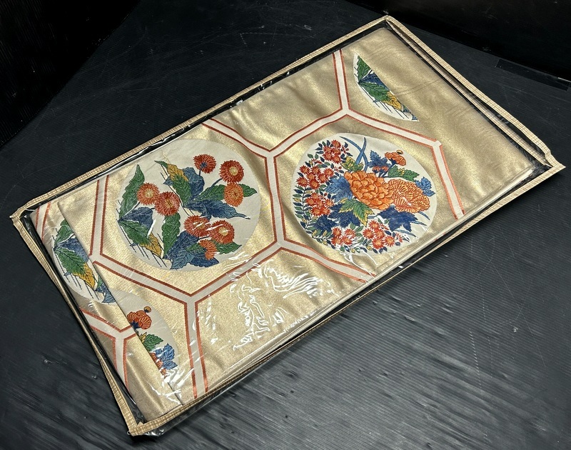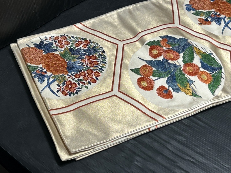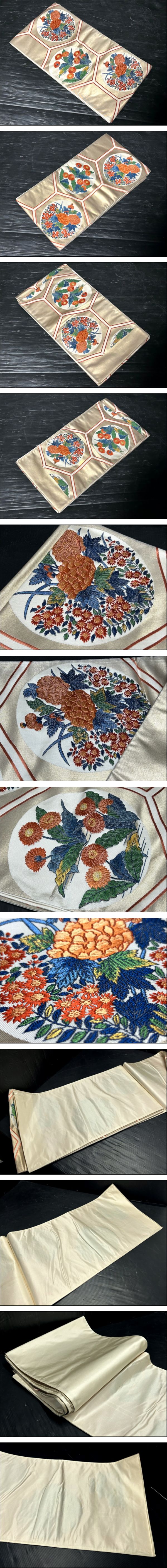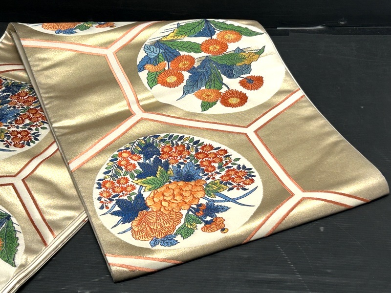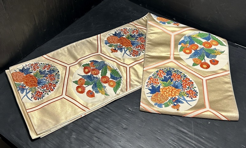 | 微美品 西陣手織 袋帯 草花丸文 六通柄金糸/正絹100% 京都西陣/呉服/着物帯/和装小物/年代物/時代物 | |