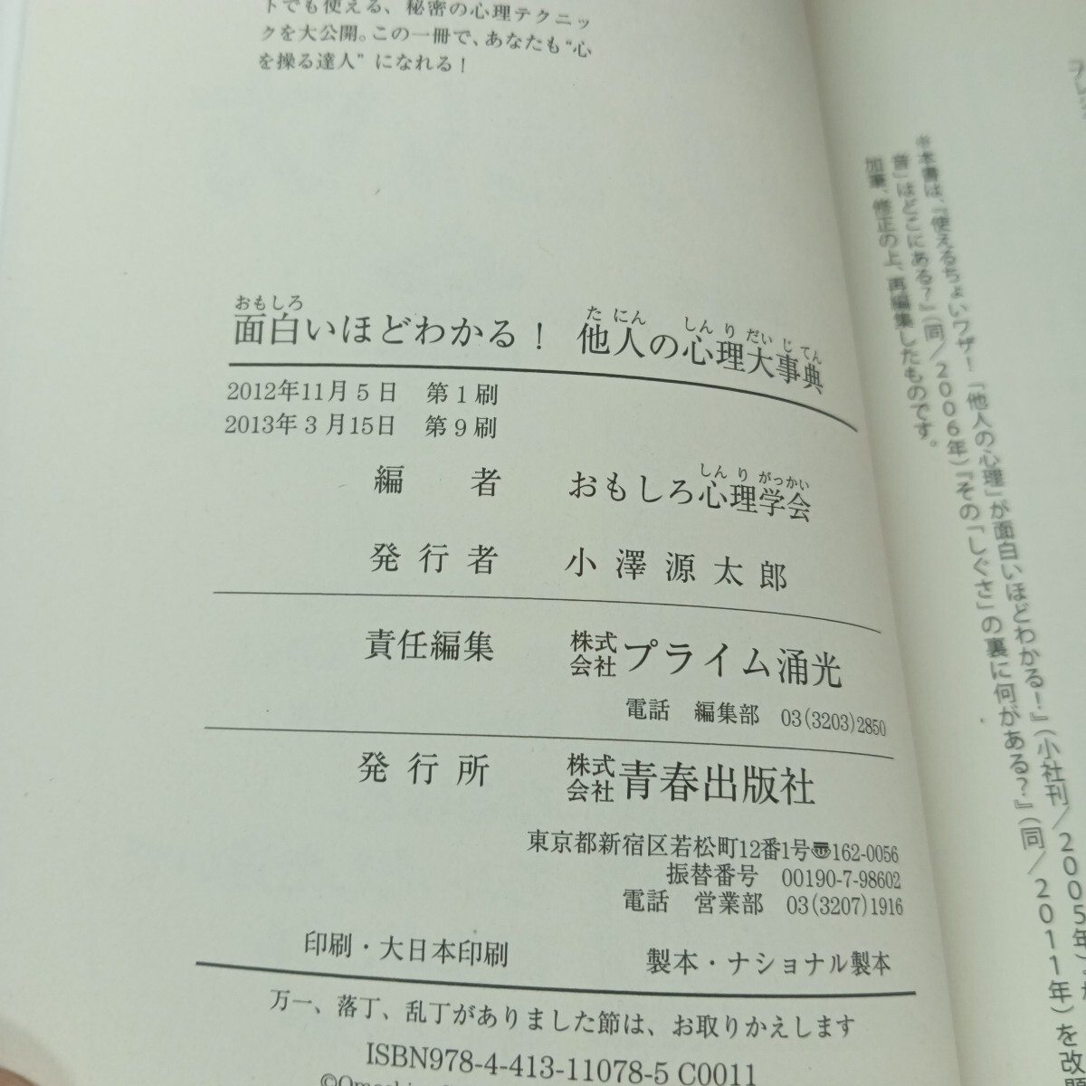 Ch-009/面白いほどわかる! 他人の心理 大事典 人の心歯ここまで(透視)できる 2013年3月 発行/L6/70825