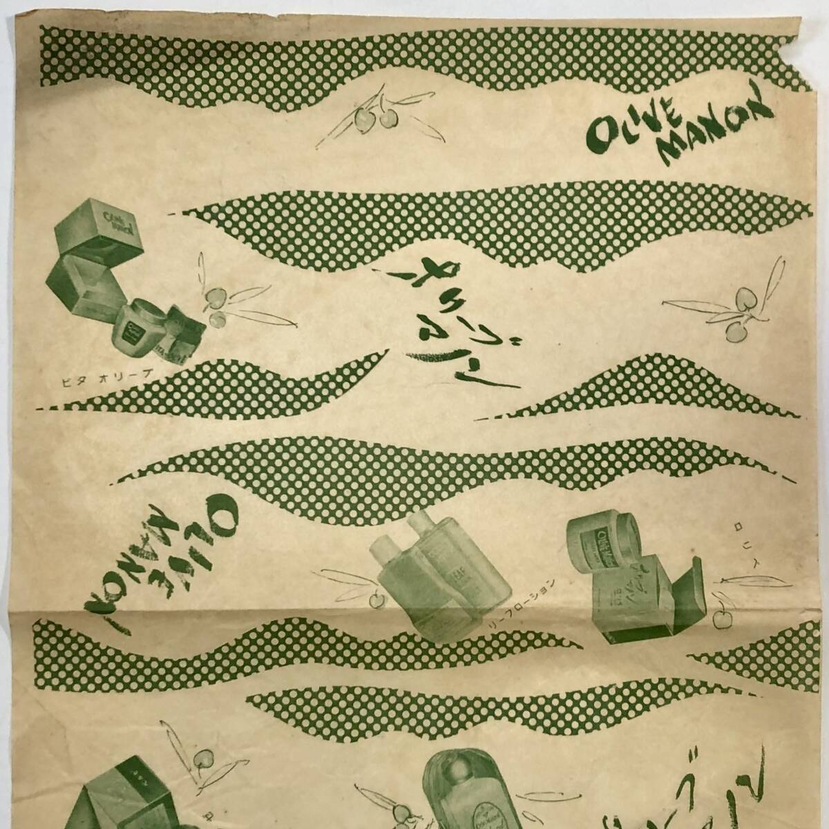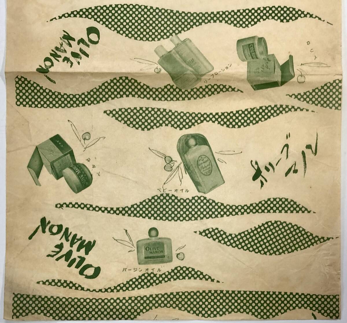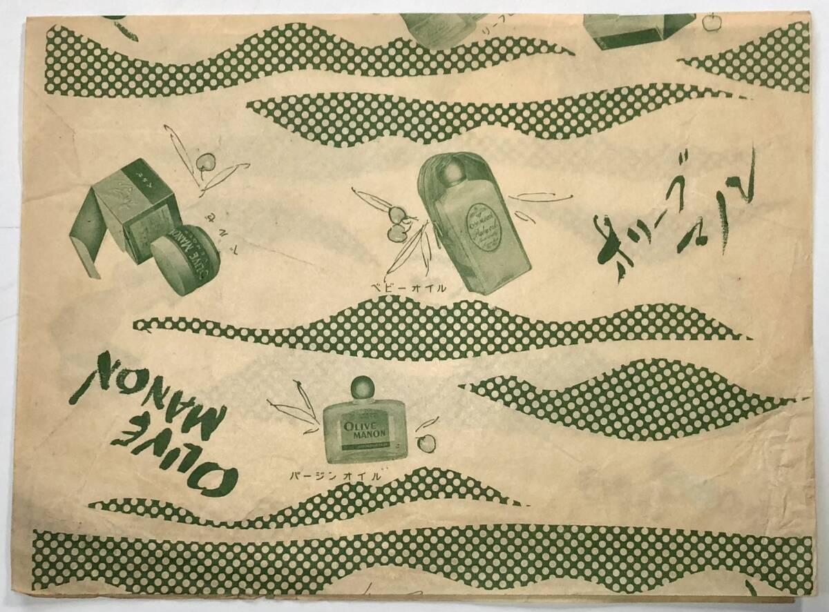 資料「化粧品 オリーブマノン」の包装紙(薬局用?/OLIVE MANON/昭和レトロ/JUNK)| 出价者 | 信用 | 价格 | 时间 |