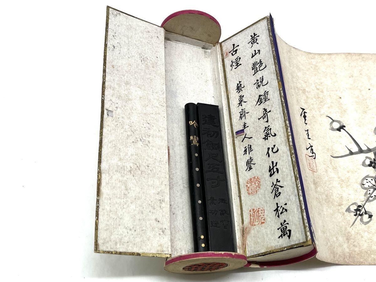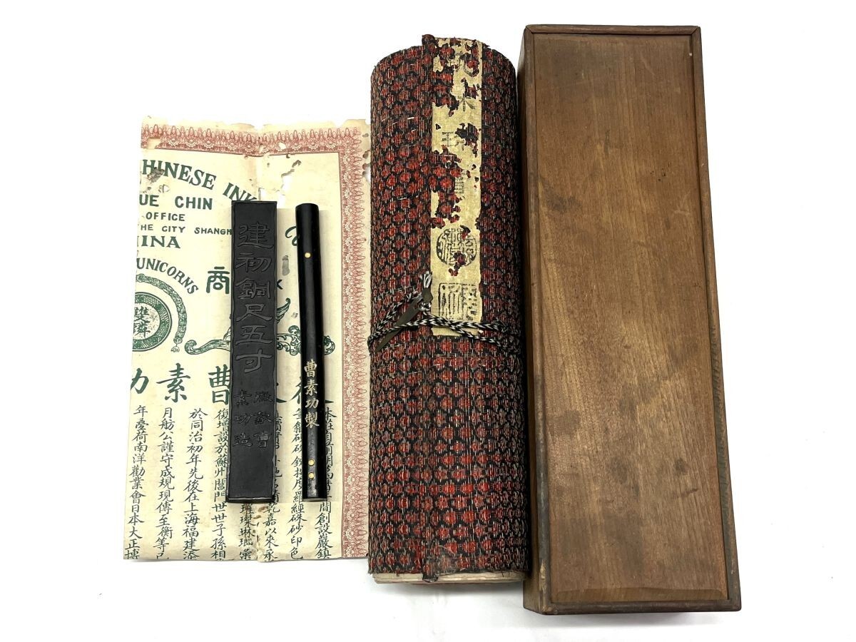 | 【R350】年代物 中国古玩 唐物 墨巻物 古い墨 芸林珎賞 墨入巻物 木箱付 書道具 アンティーク 古美術 現状品 時代物 b | ||