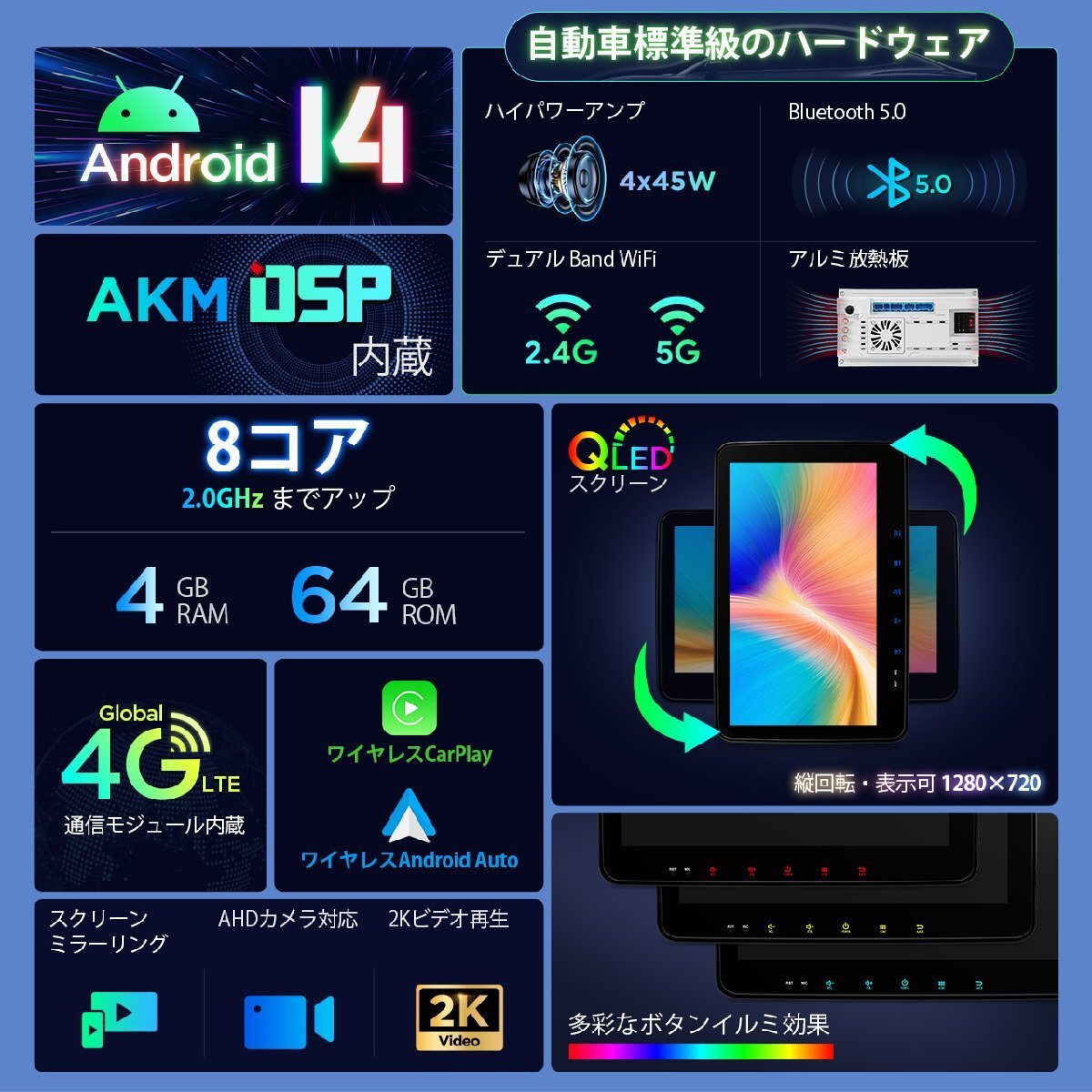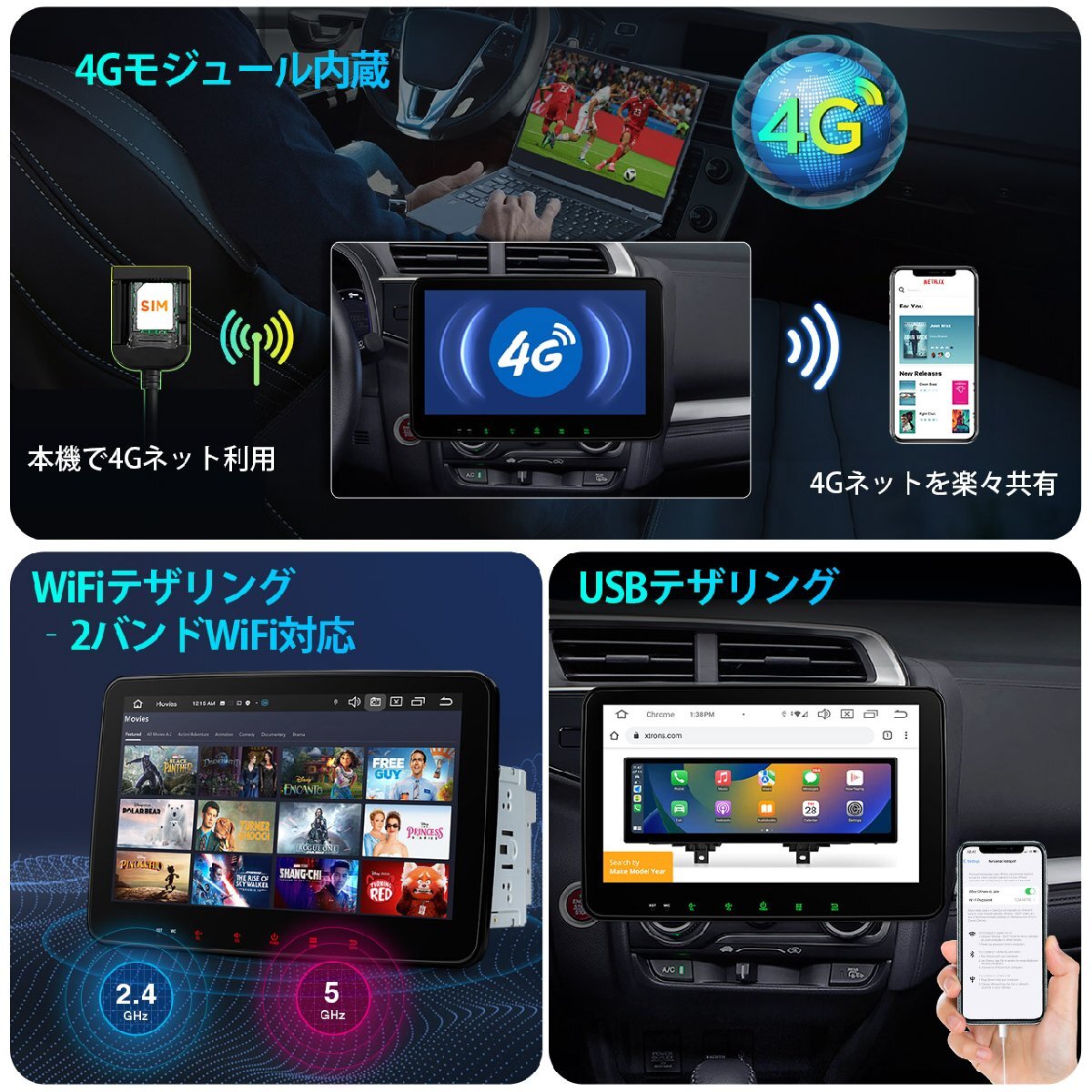 * ワイヤレスCarplay&Android auto対応 ドライブは、さらに快適に ネットに繋がり、Youtube/Googleマップなど様々のアプリがダウンロード可能 |