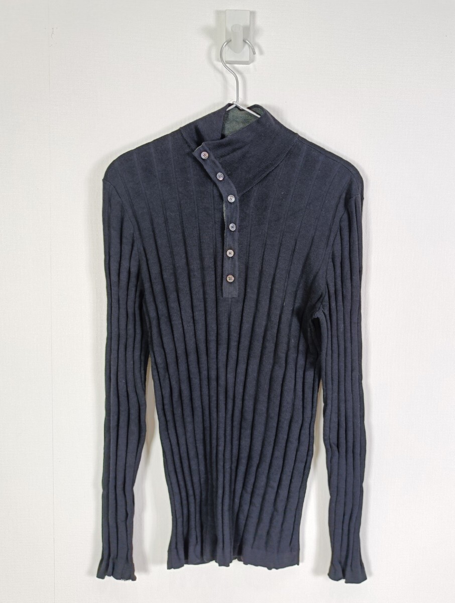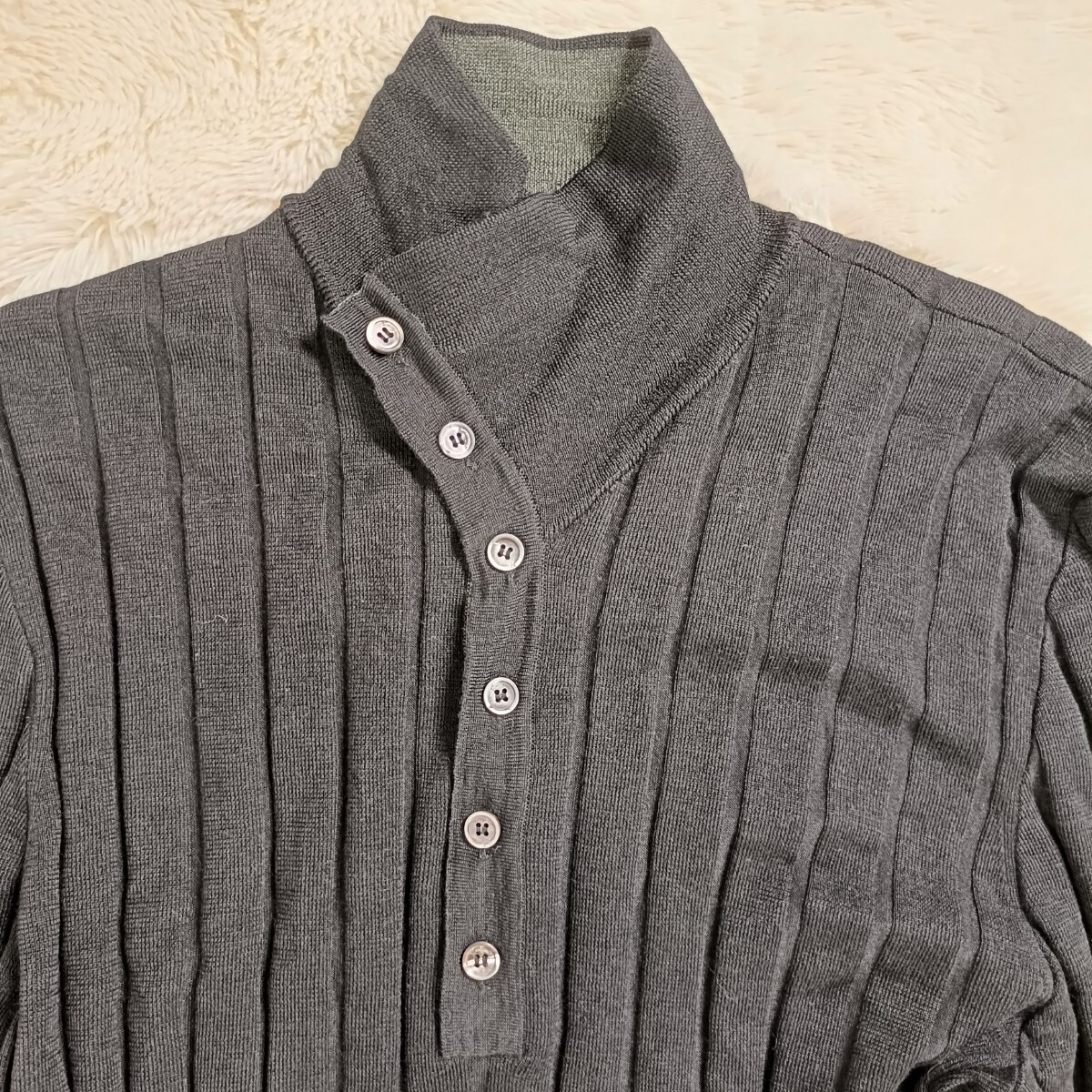 Salvatore Ferragamo サルヴァトーレ・フェラガモ ニット【サイズМ】【ブラック】【薄手】【ハイネック】【シェルボタン】1000円スタート