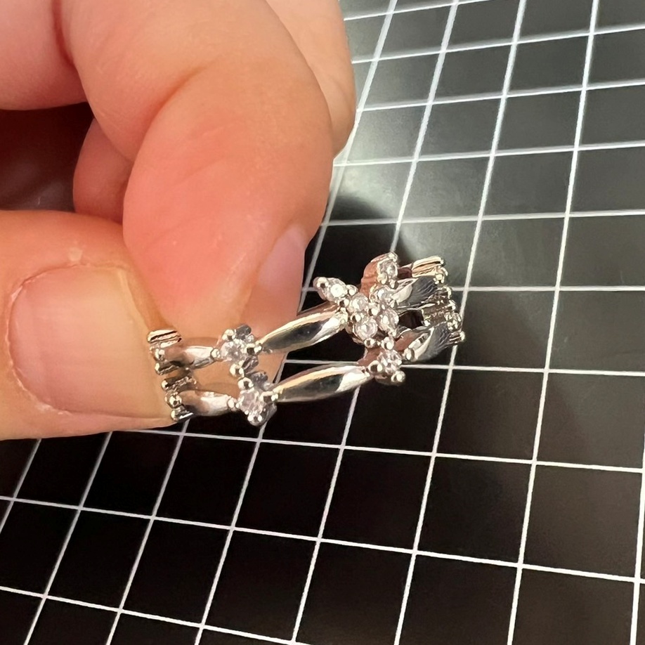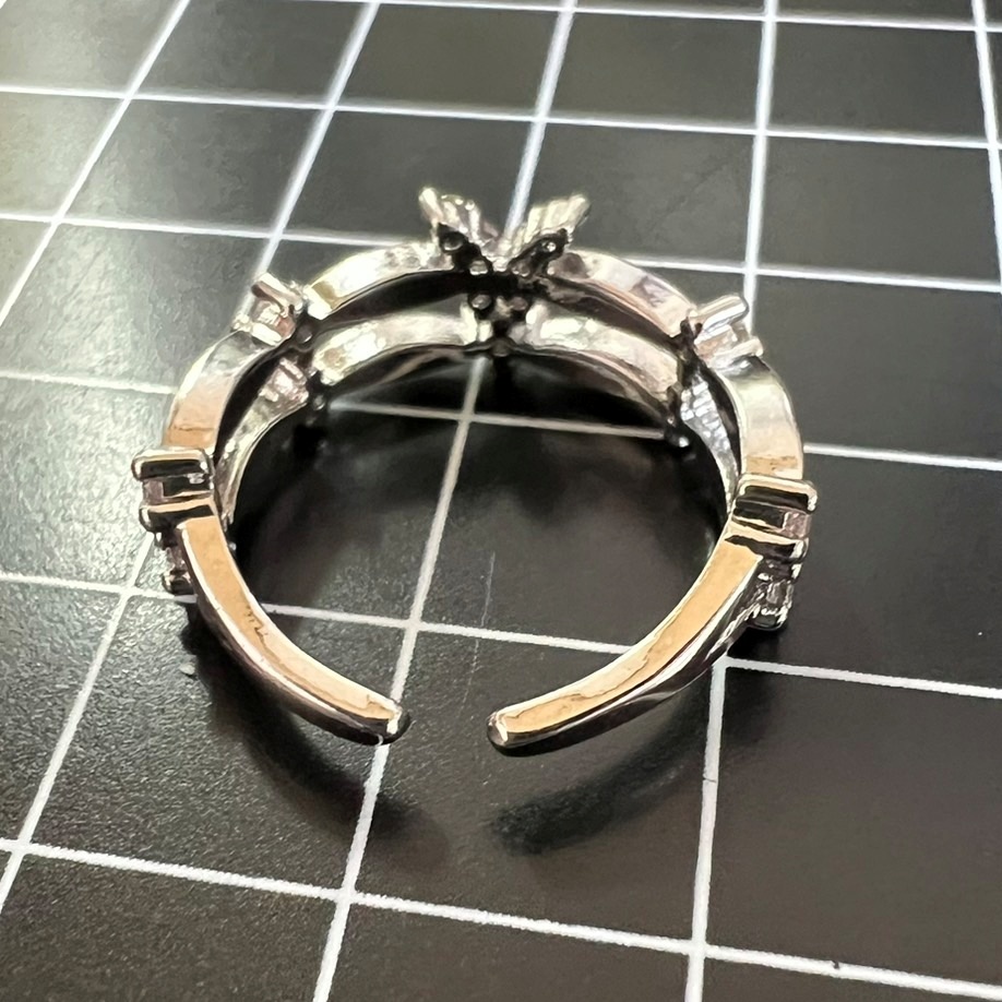 そのまま購入OK! 安心の匿名配送☆ 24時間以内の発送を心がけています。 まとめ購入(同梱発送)はの【まとめて取引】をご利用ください。 ◆━━━━━━━━━━━━━━━━━◆ 二連デザインがおしゃれなバタフライリングです。 蝶々の形のジルコニアがキラキラと輝き綺麗な指輪。 完全に閉じていないフリーサイズのオープンリングのため、開閉することで多少のサイズ調節が可能です。 材質:合金 silver925 ジルコニア カラー:シルバー サイズ:フリーサイズ ※仕入先よりの情報をそのまま記載しております。 ◆━━━━━━━━━━━━━━━━━◆ 1cmマスのマットの上にて実物を撮影してます。 サイズ感などの参考にしてください。 他にも多数レディース、メンズ、アクセサリーを出品してしております。 結婚式、披露宴、入学式、入園式、卒園式、卒業式 普段使いからフォーマル、ビジネス、カジュアルまでご利用いただける商品を取り揃えております。 | ||||