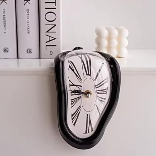 ブラック メルティングクロック 溶けたデザイン レトロ ツイスト 電子時計 置き時計 (ブラック)
